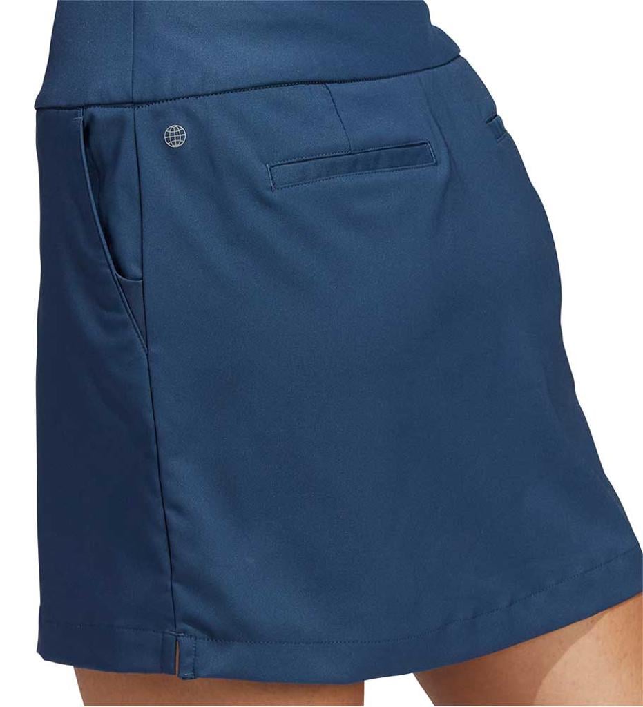 Play through with no distractions in this adidas golf skort. It's made of soft fabric with moisture-absorbing AEROREADY to keep you dry. The wide mesh waistband offers a supportive feel as you swing, bend and stretch on the course. Attached undershorts have grip tape at the hem for a comfortable, secure feel.