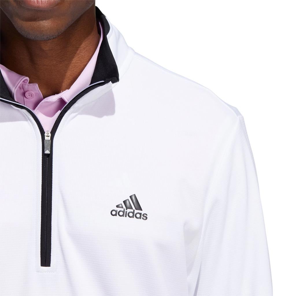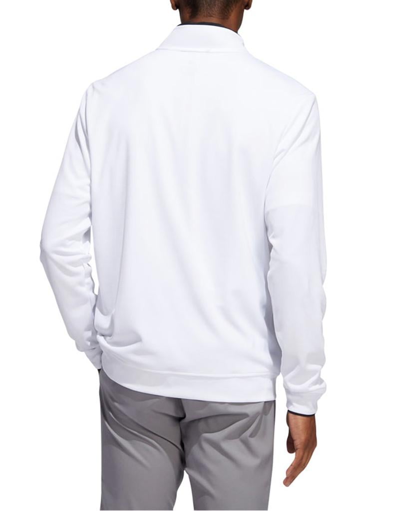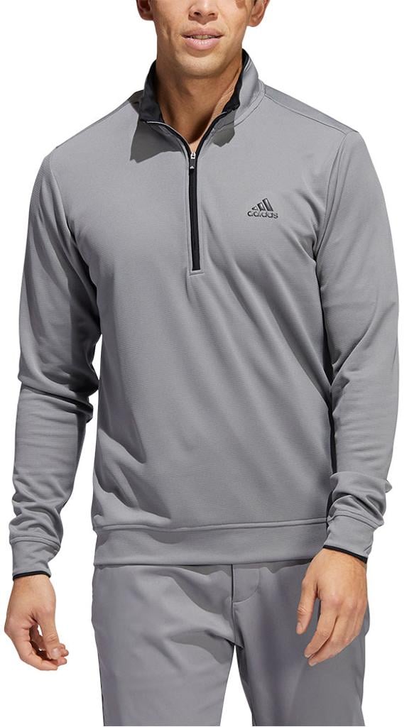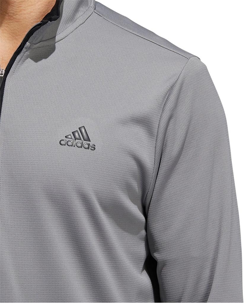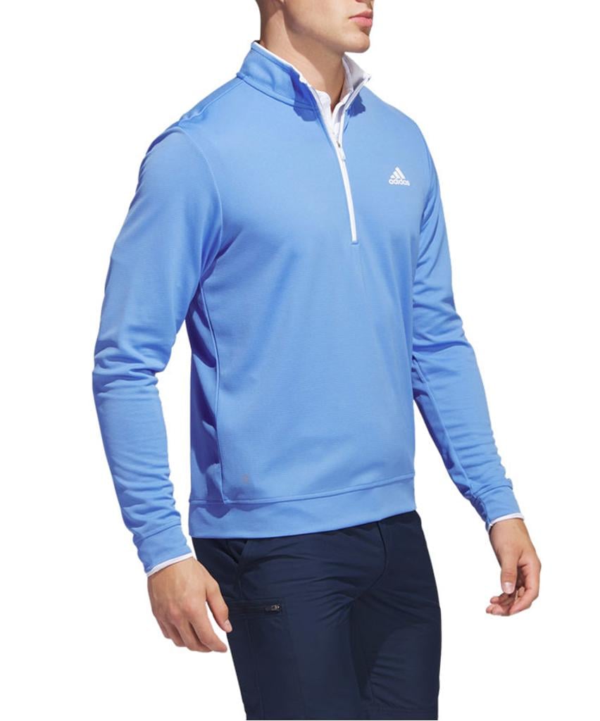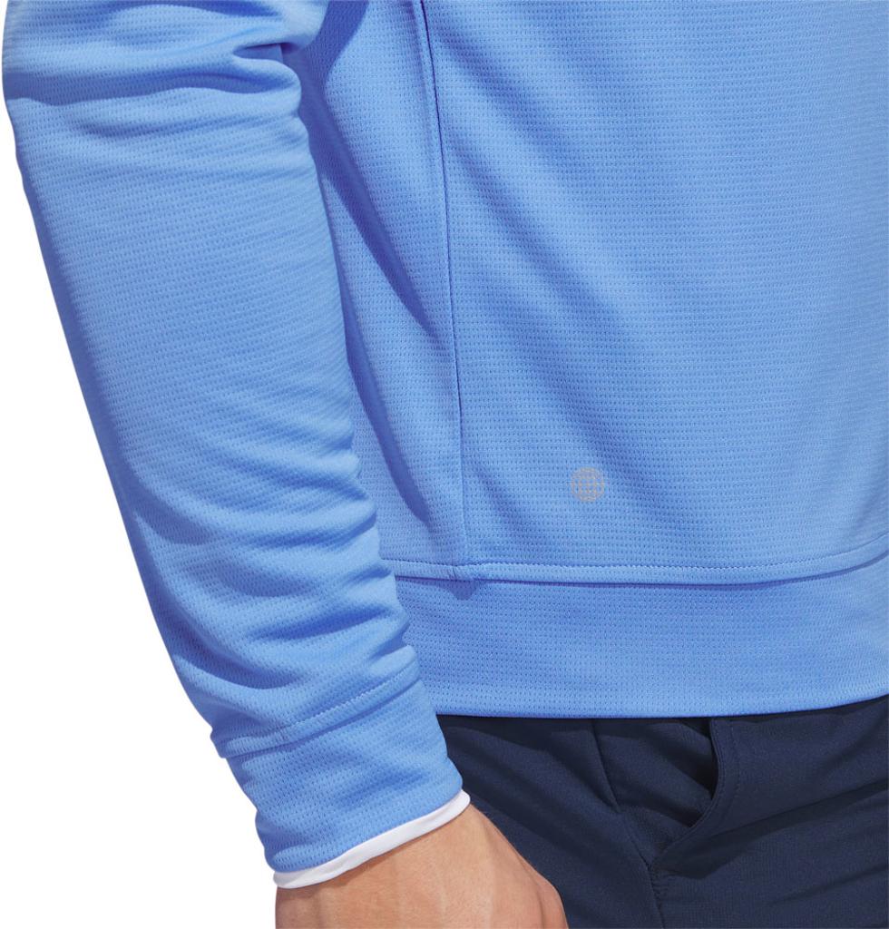 This adidas golf pullover is made of soft knit for comfort on the course. Moisture-absorbing AEROREADY keeps you dry, and built-in UV coverage lets you play with confidence on sunny days.