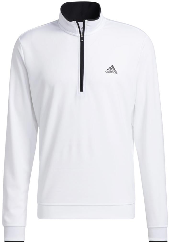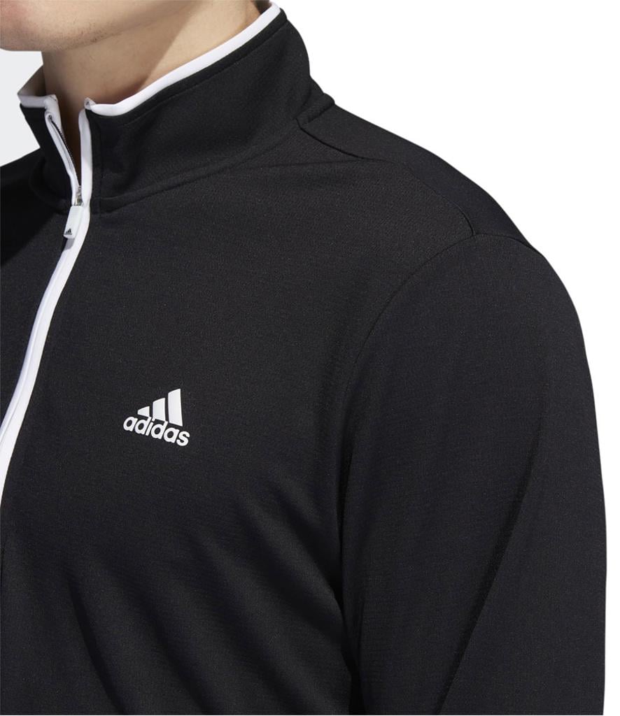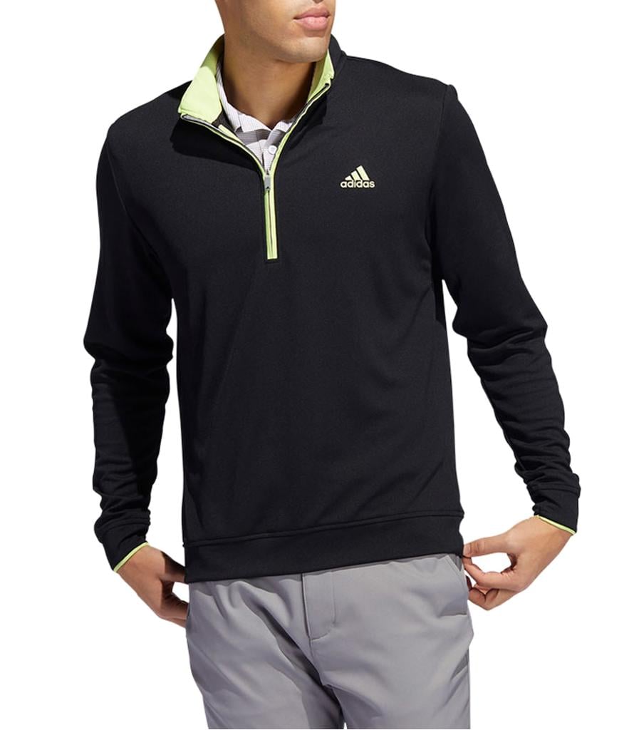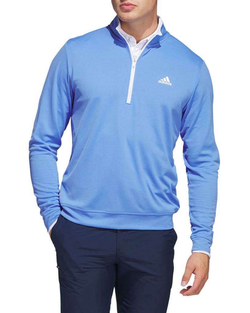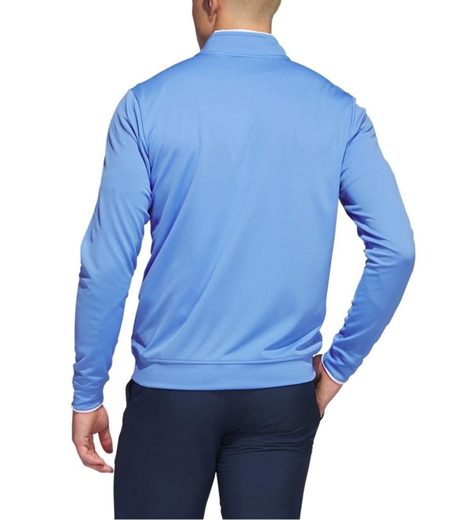 This adidas golf pullover is made of soft knit for comfort on the course. Moisture-absorbing AEROREADY keeps you dry, and built-in UV coverage lets you play with confidence on sunny days.