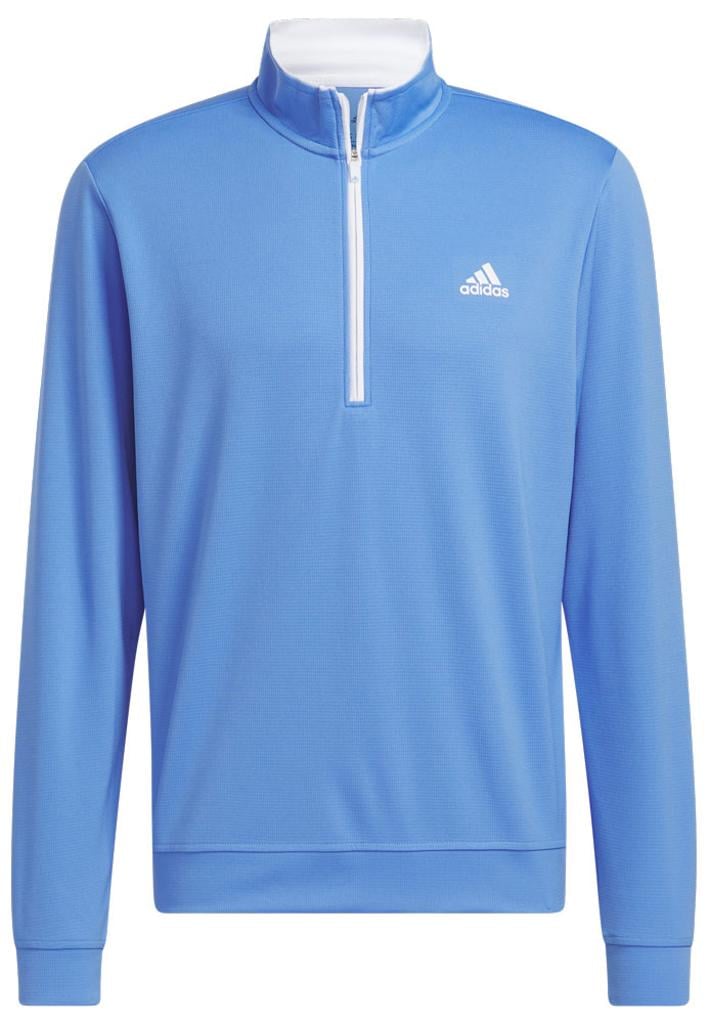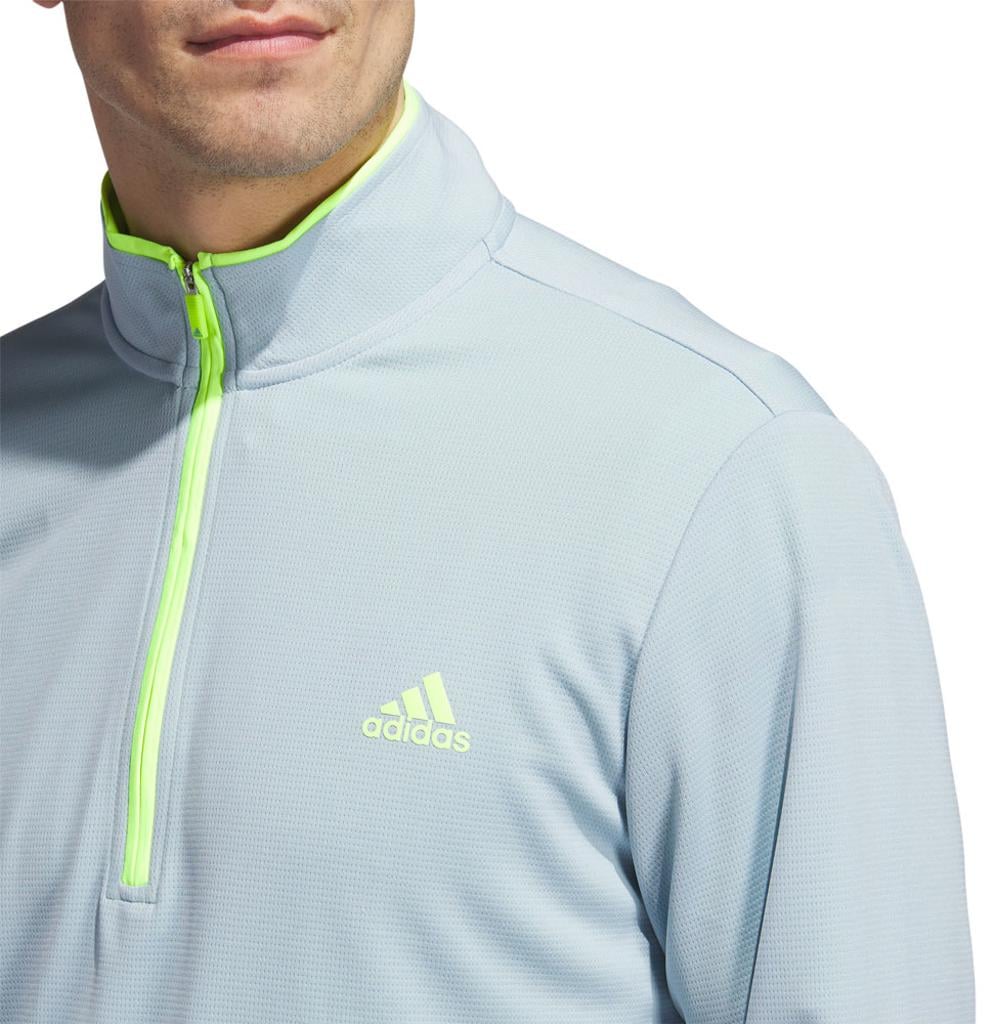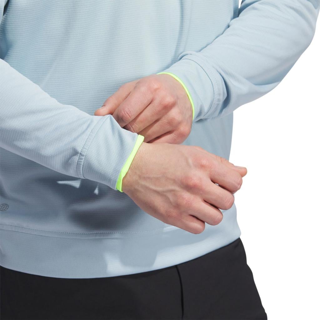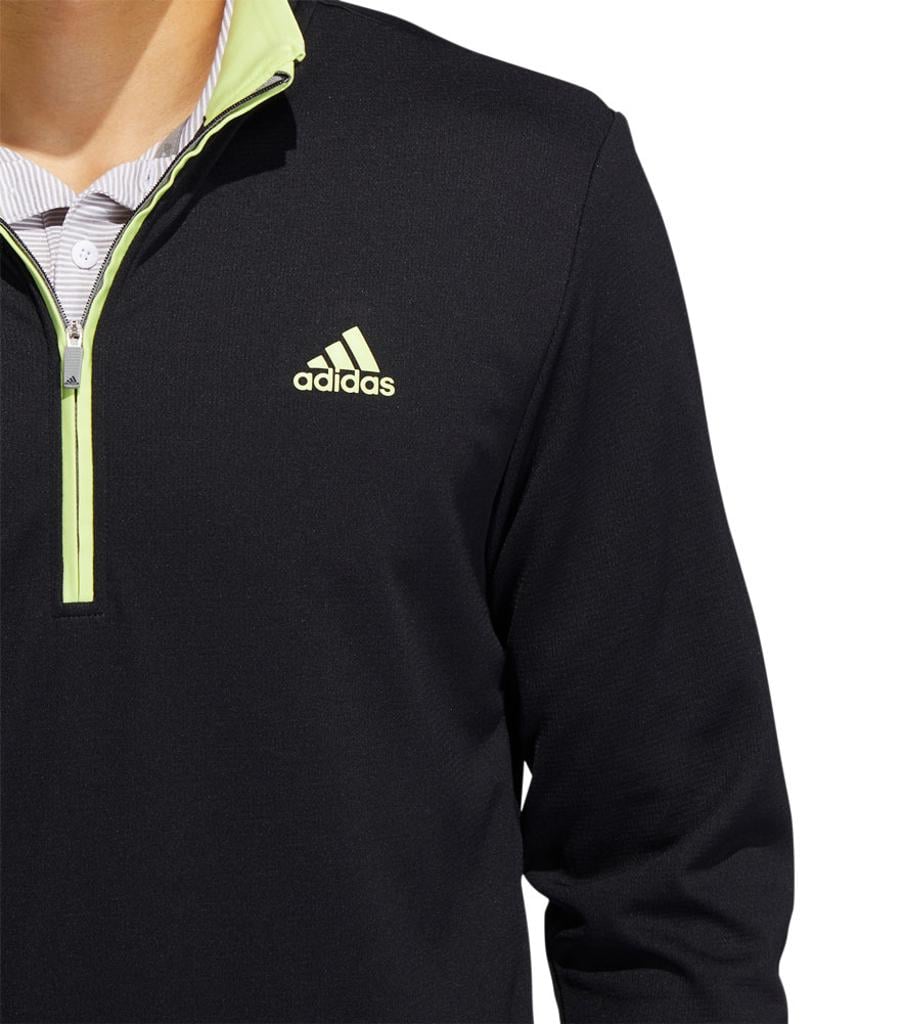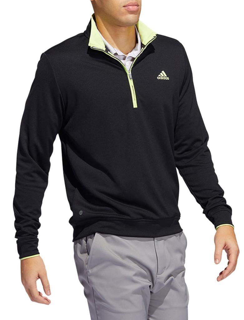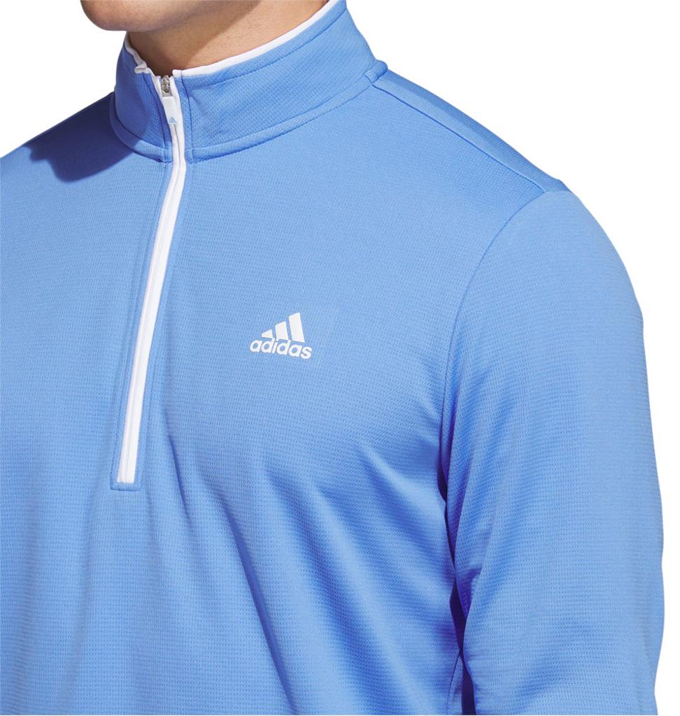 This adidas golf pullover is made of soft knit for comfort on the course. Moisture-absorbing AEROREADY keeps you dry, and built-in UV coverage lets you play with confidence on sunny days.