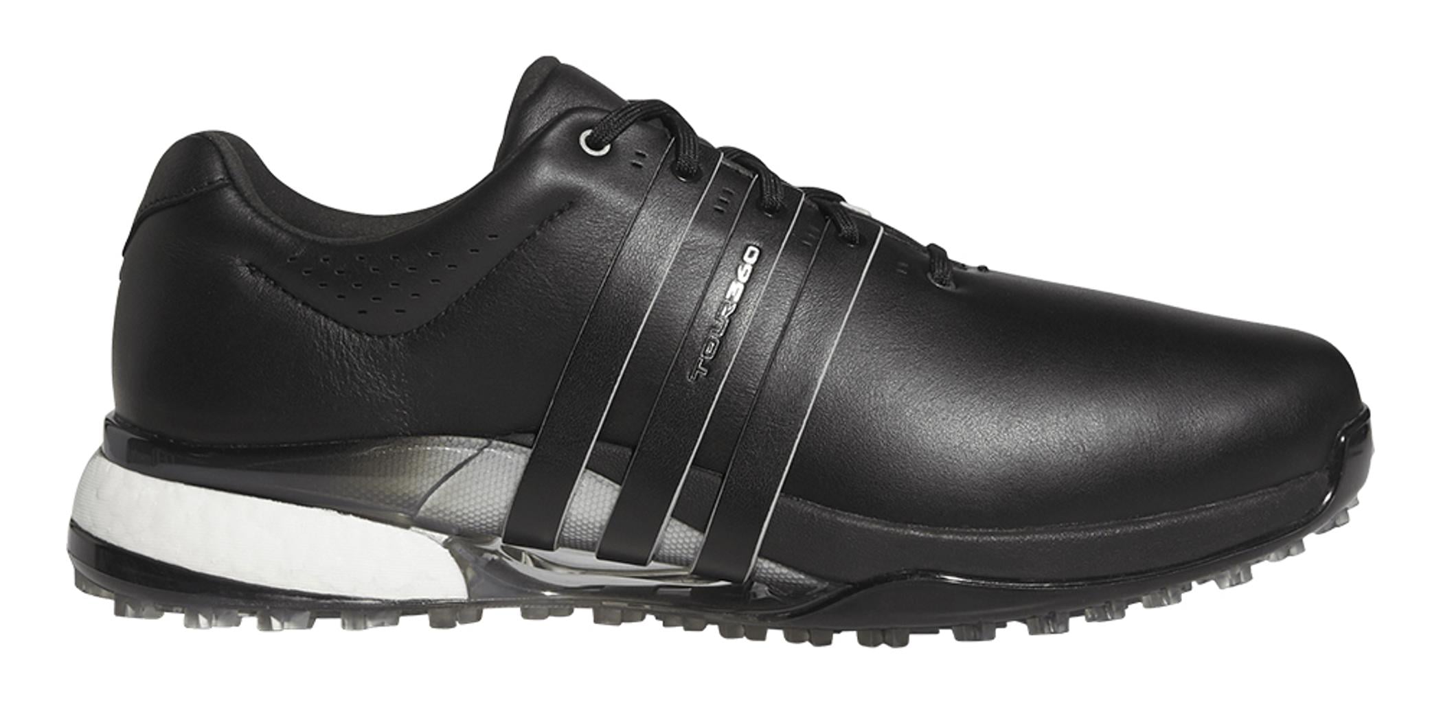 Lace up in these Tour360 Spikeless Golf Shoes from adidas and experience enhanced stability courtesy of the signature wrap-around design, along with the energy return of adidas BOOST. The spikeless outsole offers confident grip on the course with the comfort and versatility for all-day wear. Spikeless golf shoes for performance and versatility.