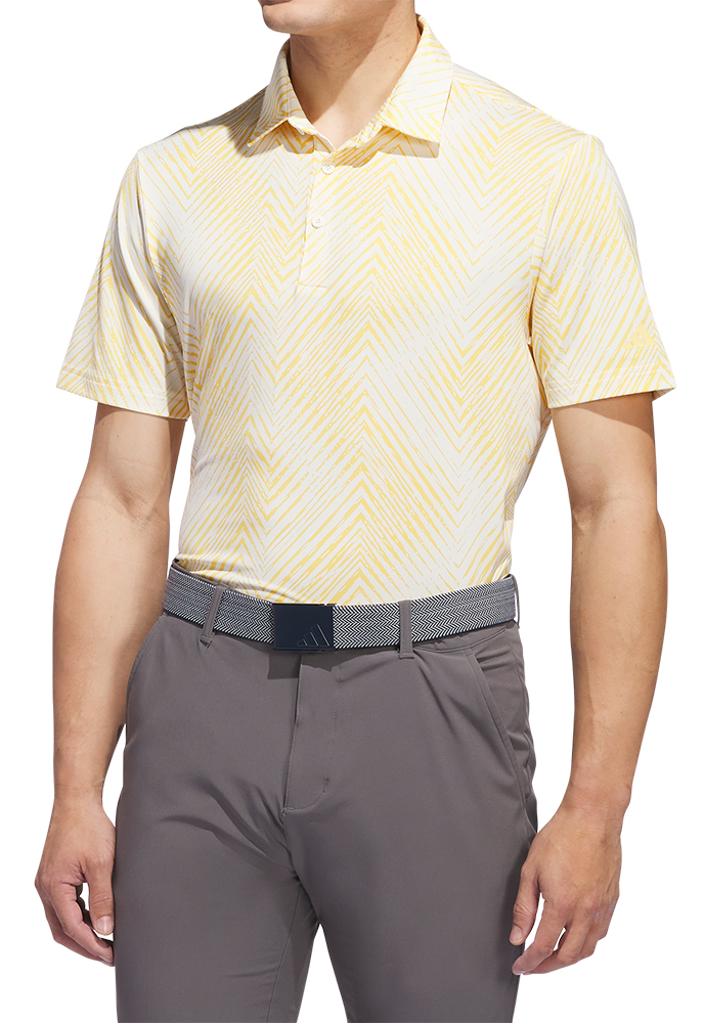 Step onto the course with absolute confidence. This men's adidas golf polo shirt showcases a stylish allover graphic print, while expertly managing moisture to ensure you remain cool and comfortable throughout your game.