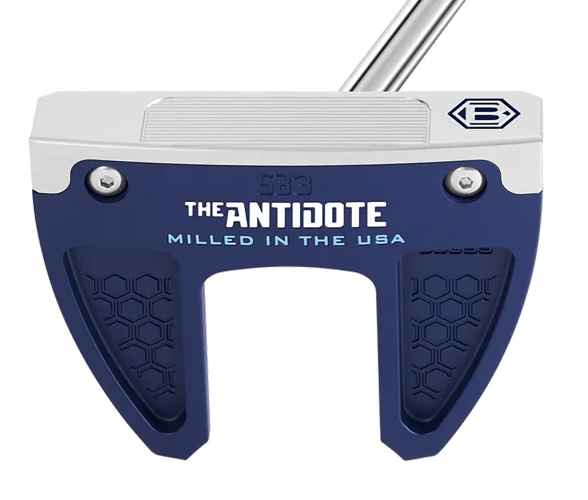 This Antidote Series putter is equipped with a Chrome Tour Grade shaft, a custom-matched Lamkin or Winn Grip, and an Antidote Series magnetic headcover.