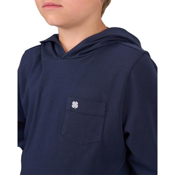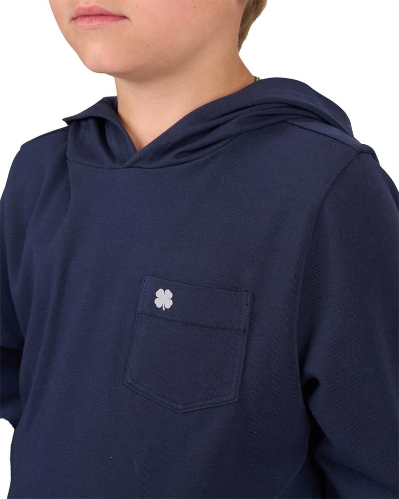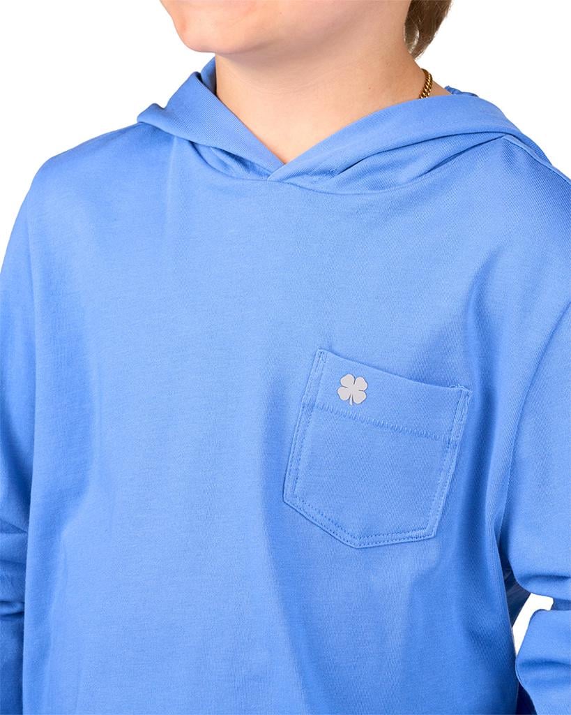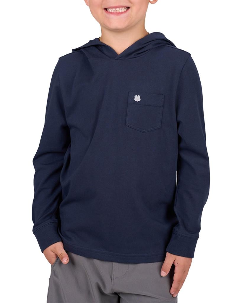 Our long-sleeved black Luxe Tee Hoodie combines luxury with functionality, making it an essential piece for your child's wardrobe. Crafted from a premium blend of pima cotton, polyester, and spandex, this exceptionally soft hoodie delivers outstanding athleisure style without compromising comfort.