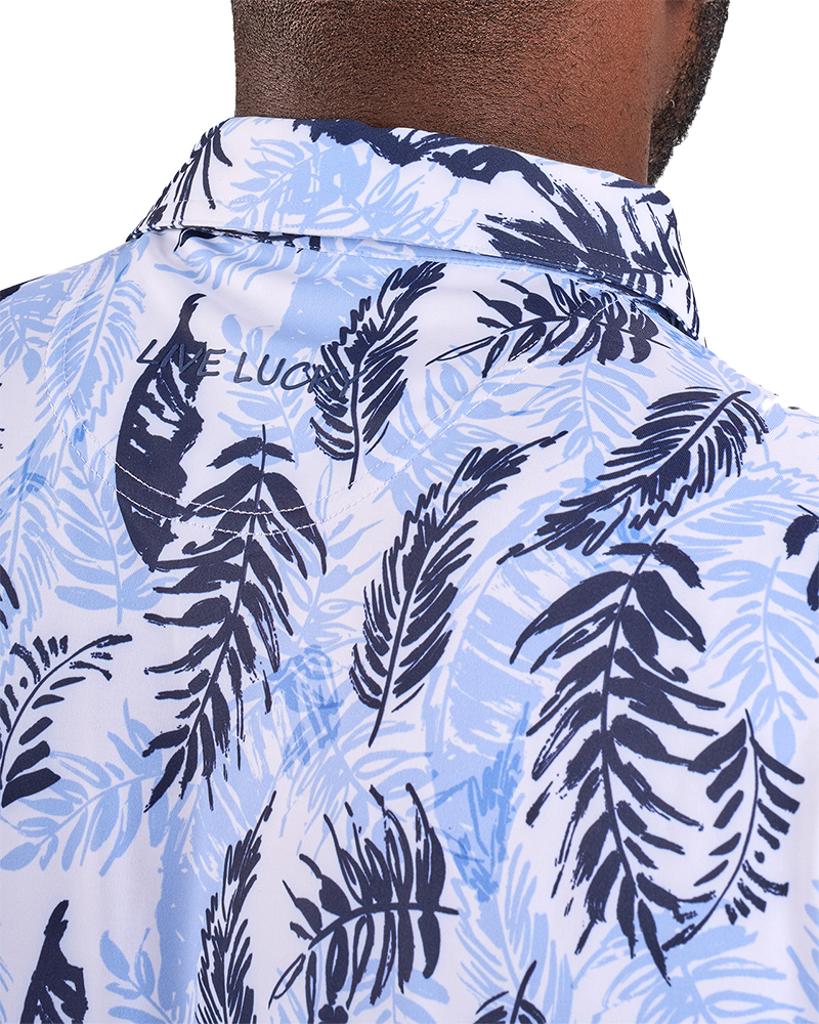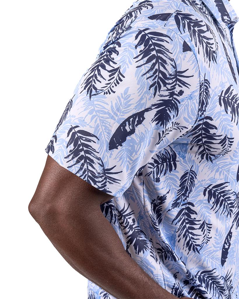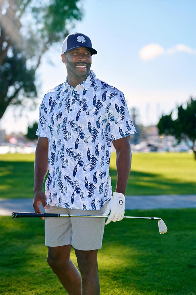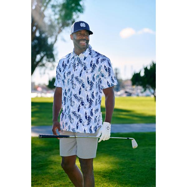 The Hidden Clover Polo showcases a sophisticated palm leaf pattern, expertly crafted with state-of-the-art Dry-Tech Performance technology.