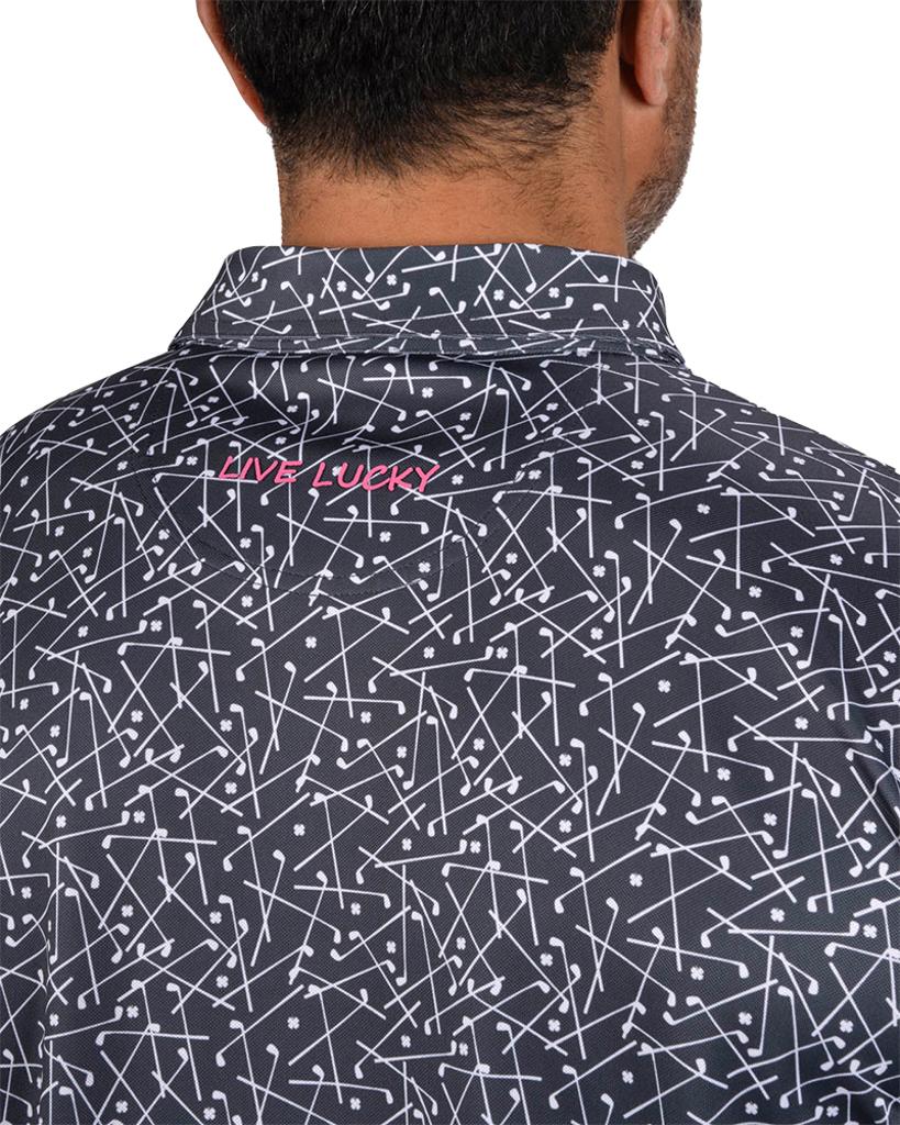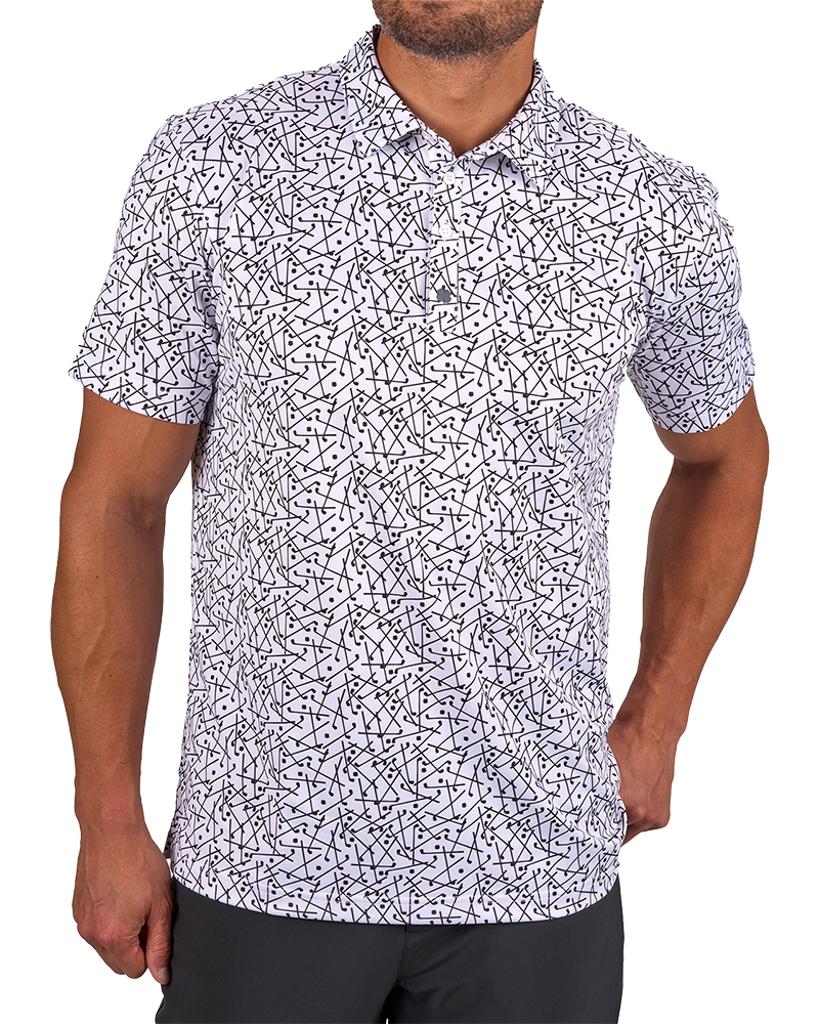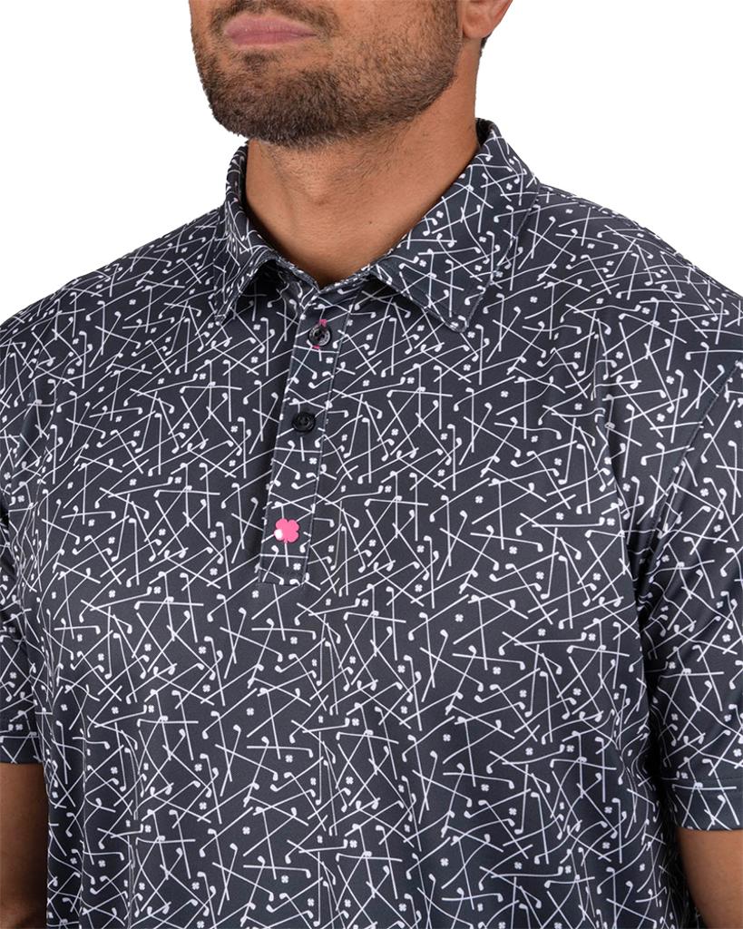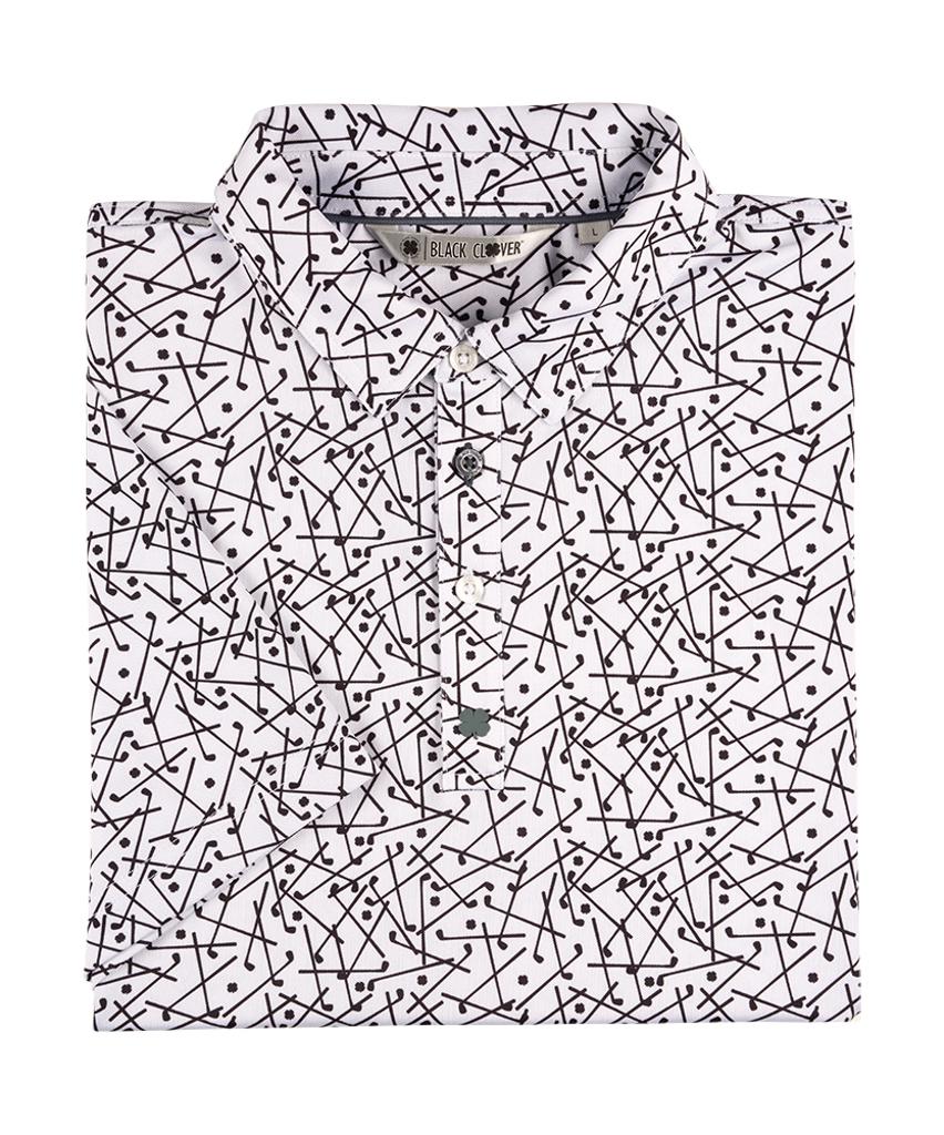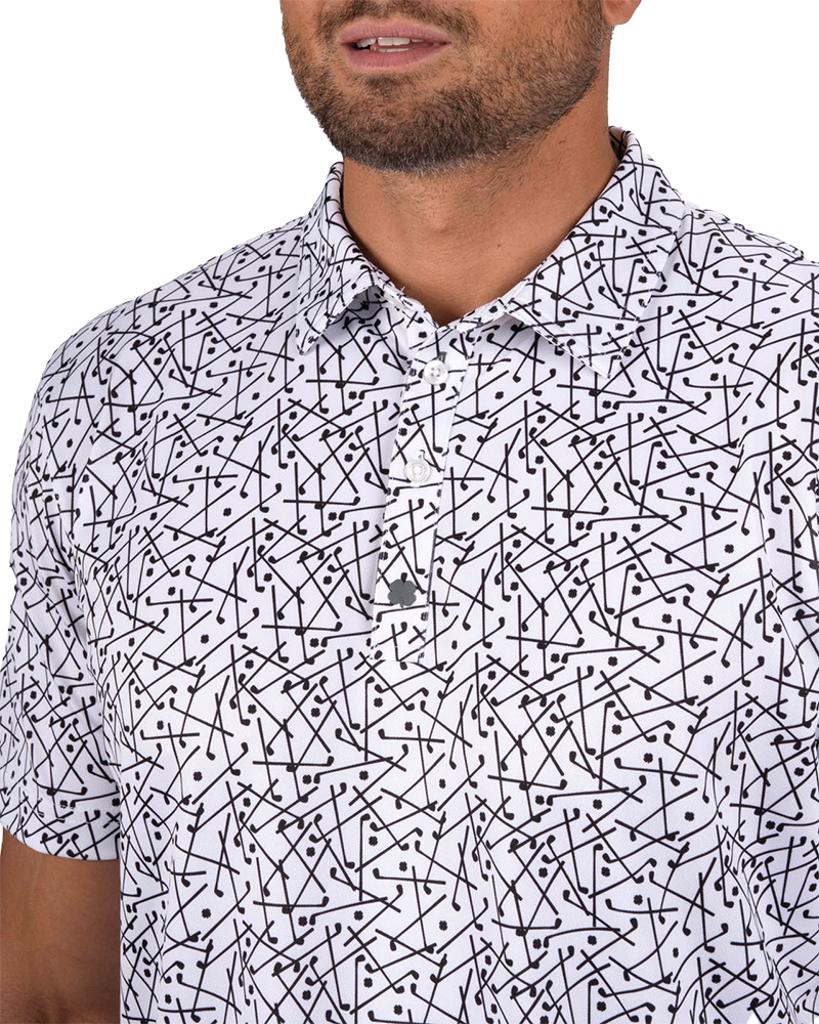 Manufactured from a high-quality Poly/Spandex stretch blend, this polo adapts effortlessly to your movements during every swing. The ultra-soft pique stretch fabric ensures maximum comfort, while the innovative shape-retention technology guarantees it maintains its smart appearance even after multiple washes. Featuring a discreet club pattern, this polo adds a touch of luck and style to your golf attire.
