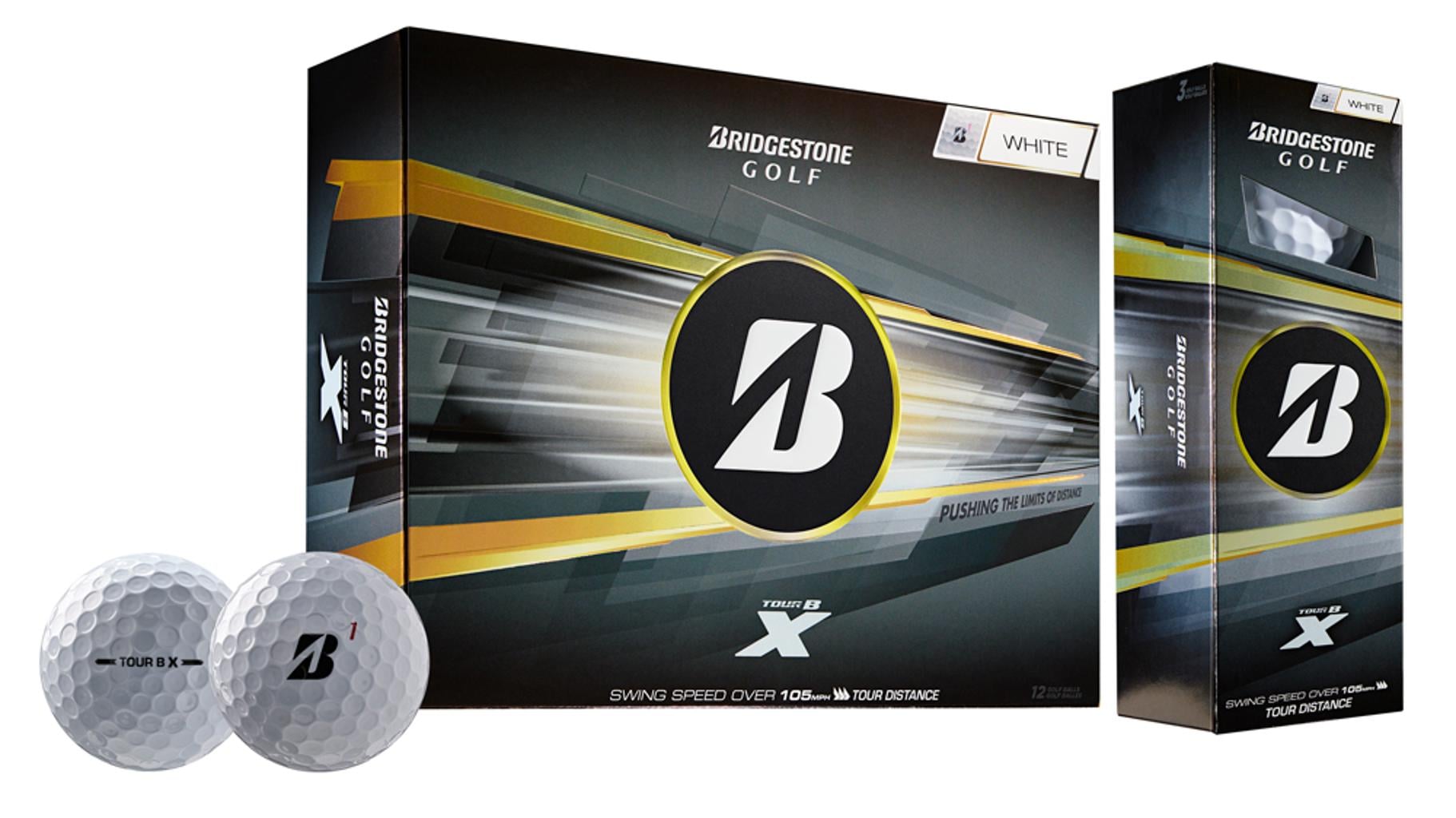 The TOUR B X boasts increased ball speed, ensuring MAXIMUM DISTANCE off the tee and HIT & SIT performance during approach shots. As the leading name in golf ball fitting, Bridgestone Golf presents the TOUR B X, designed for players with swing speeds OVER 105 mph, who are seeking additional distance.
