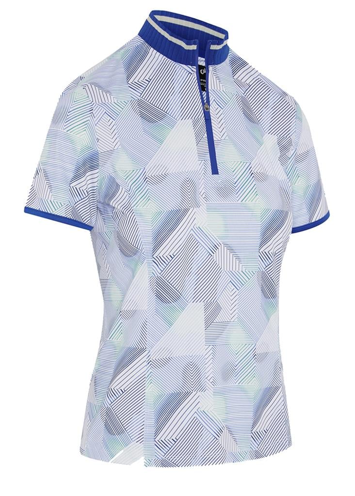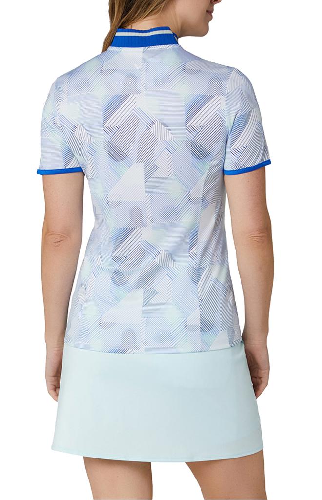 Active Print Short Sleeve Polo with Ribbed Collar and Zip Opening
