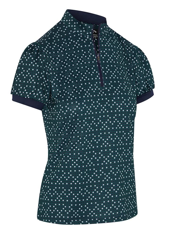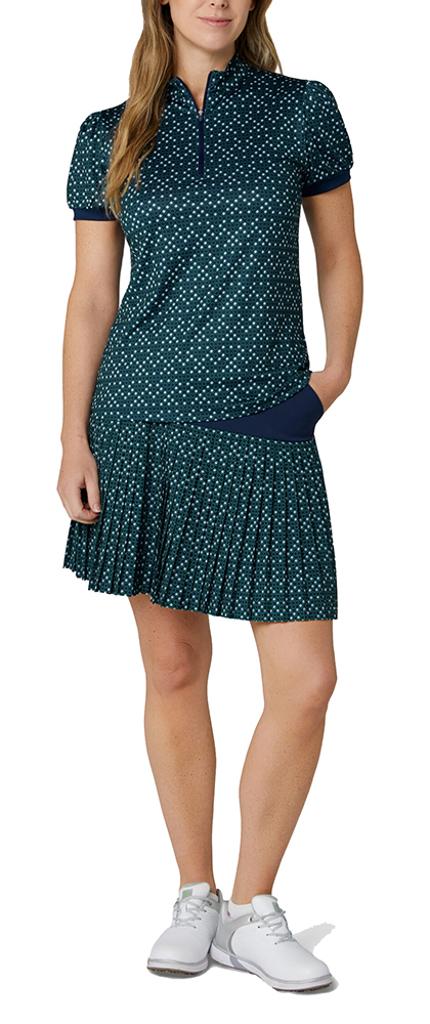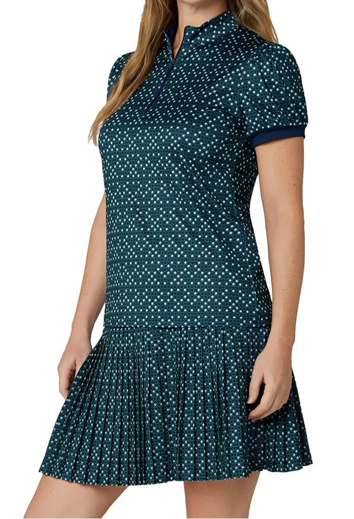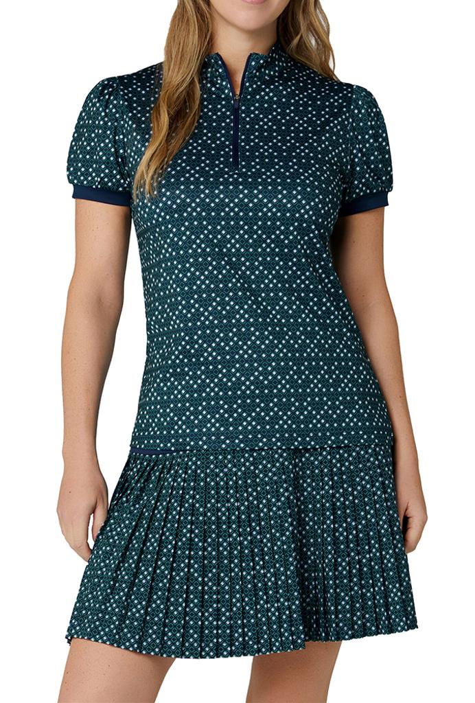 Framing Geo Print Short Sleeve Polo with Mock Neck Collar and Zipper