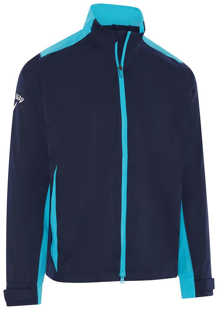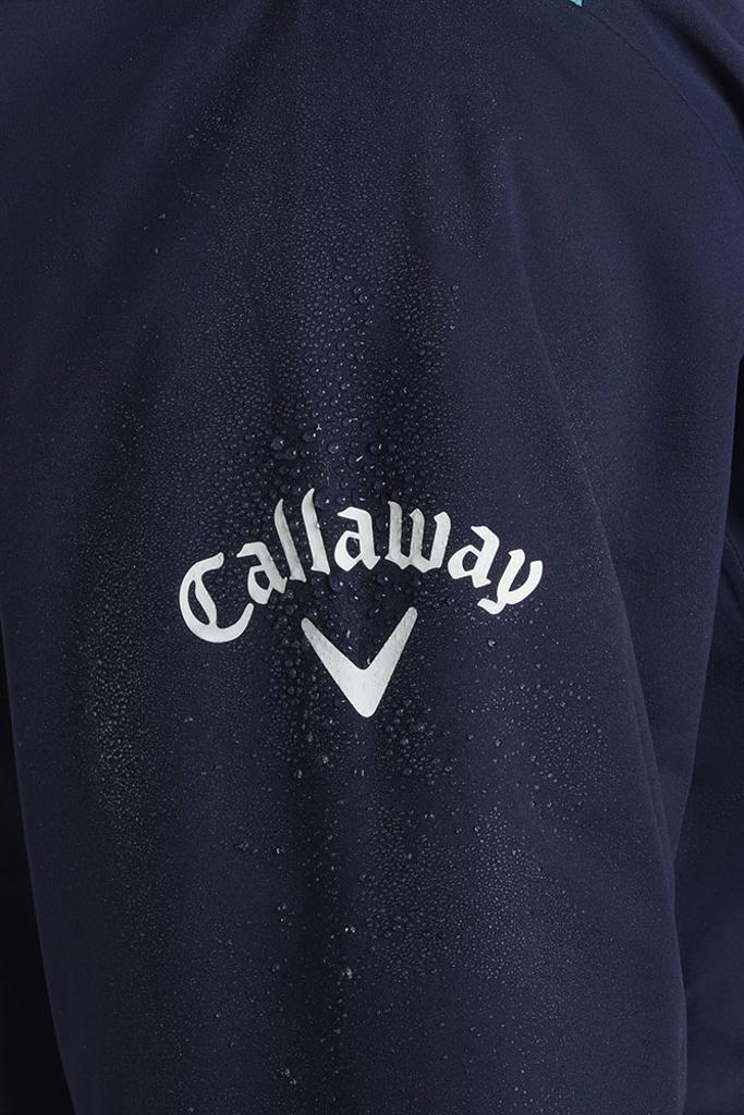 Constructed from 100% polyester and featuring an impressive 10,000 MMU waterproof rating, this jacket is designed to withstand even the heaviest downpours, ensuring you stay dry and comfortable throughout your game. The jacket is enhanced with contrast side panels and Aquaguard waterproof zippers, providing additional protection against the elements. For extra functionality, the adjustable toggle hem and side pockets deliver convenience. With the Callaway Tour Logo on the right sleeve and a stylish Chev design on the back of the collar, this jacket is the perfect combination of style and high performance for discerning golfers.