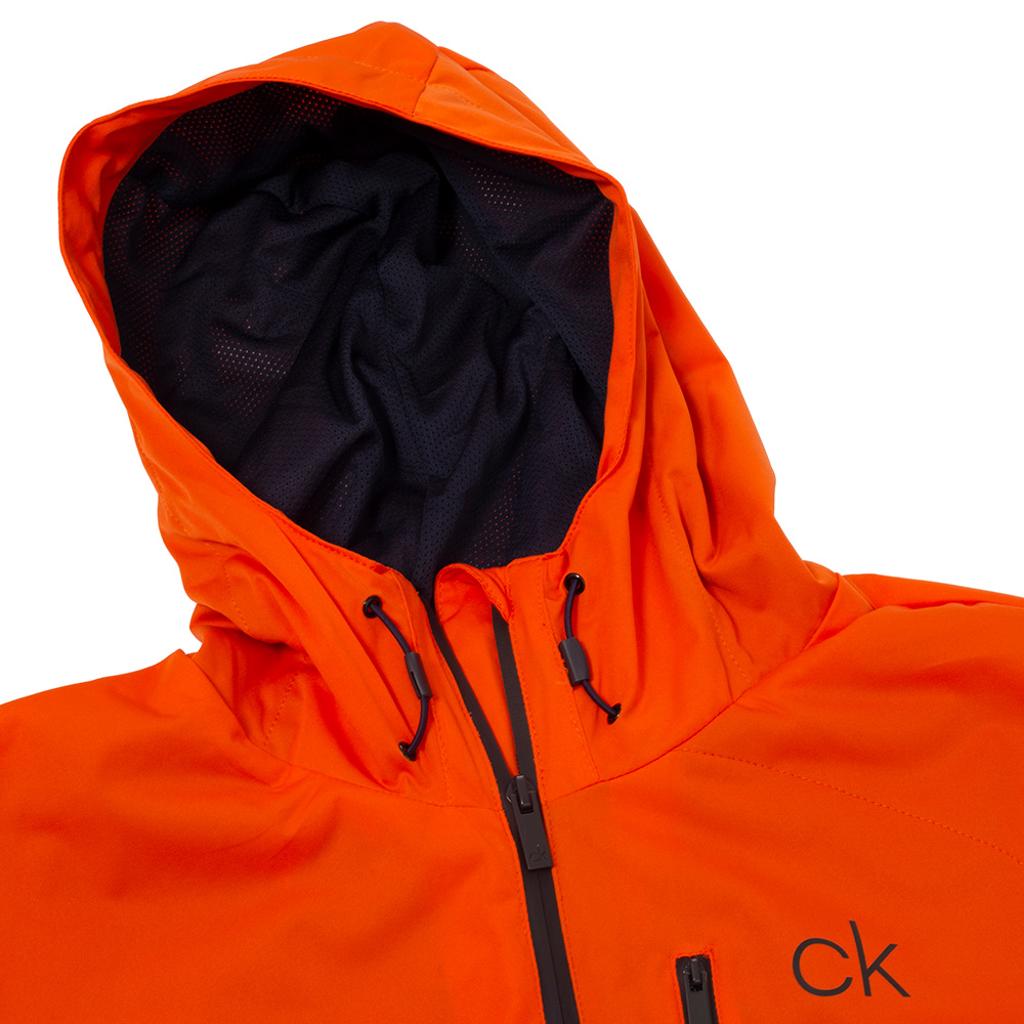 Modern rain jacket from Calvin Klein golf to keep you dry and your game on track when the weather takes a turn. Chill Force Outer Layer Technology this jacket is fully seam sealed with an attached hood and waterproof zips this high performing jacket is lightweight and breathable.