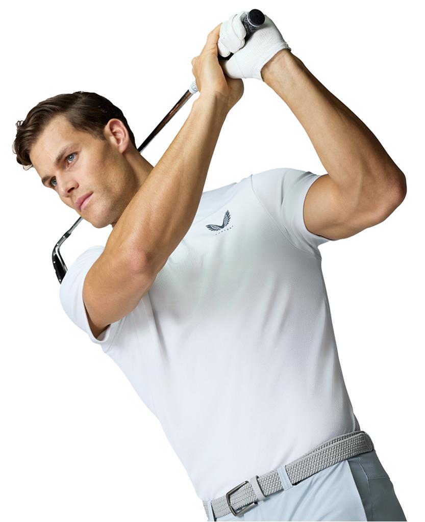 Introducing our Men’s Engineered Knit Polo Top, meticulously designed with a breathable knit fabric that promotes superior ventilation on and around the golf course. This innovative polo features advanced Aertek technology, which efficiently wicks moisture away from your body, ensuring lightweight comfort even in high-pressure situations.