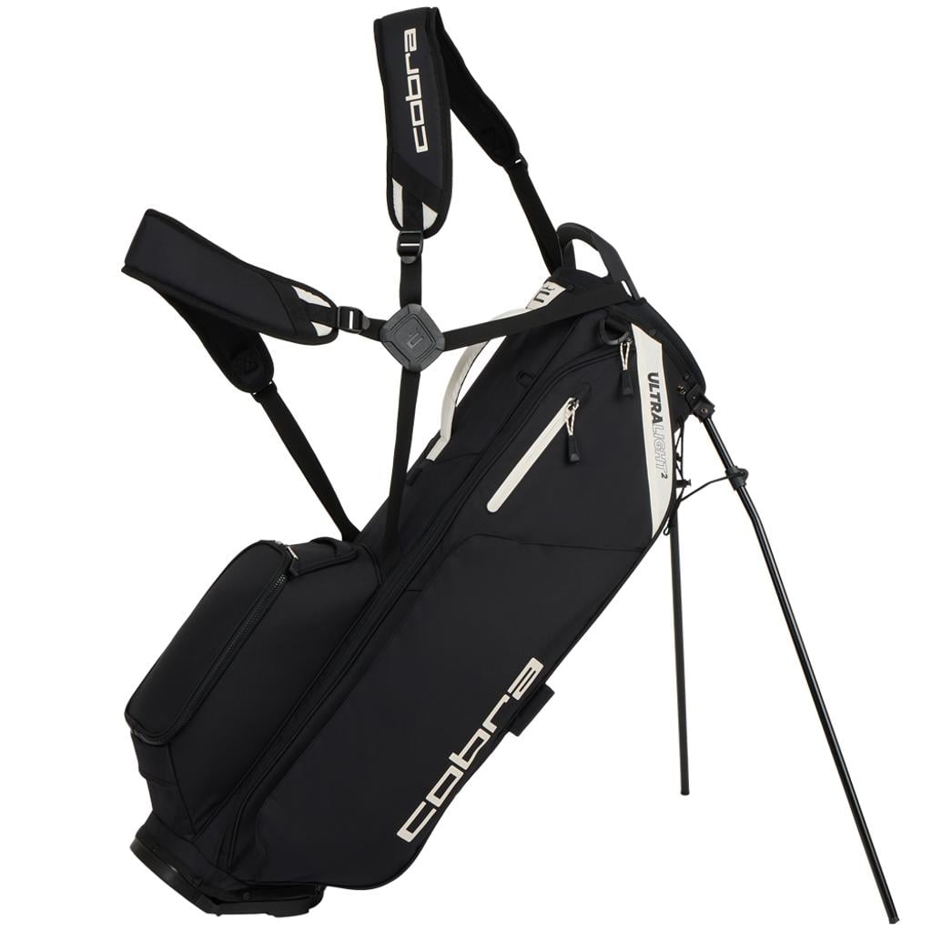 Further enhancing its functionality, the Cobra Ultralight 2 Pro Stand Bag includes an integrated stand with non-slip foot pads to provide stability on various terrains. The design also incorporates easily reachable front lift handles, a Cool Flow padding structure for superior comfort, and a cart strap pass-through channel for seamless cart use. A matching rain hood adds to the overall practicality, making this bag a versatile and lightweight choice for any golfer.