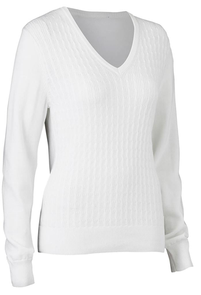 A cable knit front provides a stylish look and the cotton acrylic blend will provide the necessary warmth and mobility to keep you comfortable on the golf course.