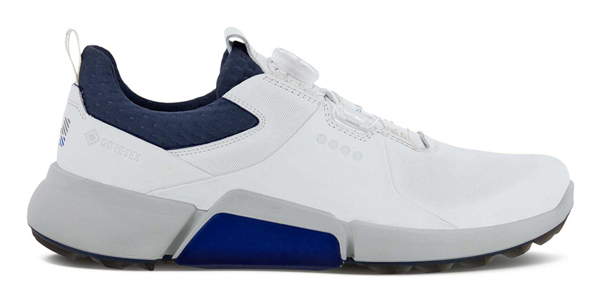 The ECCO M GOLF BIOM® H4 is made in durable ECCO leather with a micro-perforated embossing and GORE-TEX waterproof technology to keep your feet dry even in wet weather.
