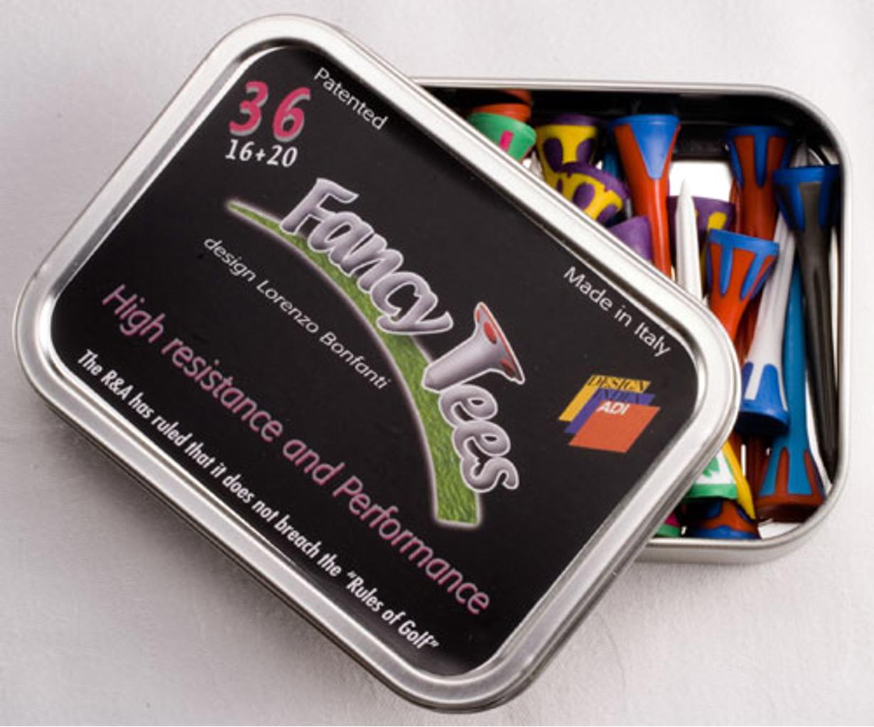 Our Fancy Tees are new and innovative, they are obtained by combining two different polymers, a stiff one and a soft one, with an aesthetic and function result that is quite different from other products currently available on the market. T