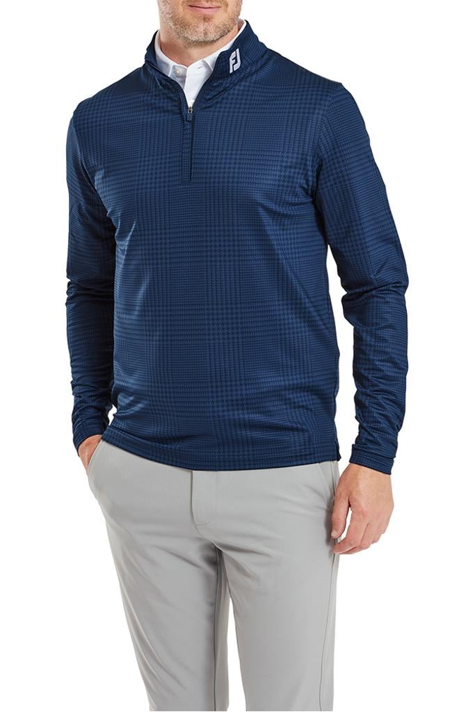 Introducing the FootJoy Men's Glen Plaid Print Chill-Out Midlayer Pullover for 2024 – the ultimate blend of style, comfort, and performance tailored for the avid golfer.