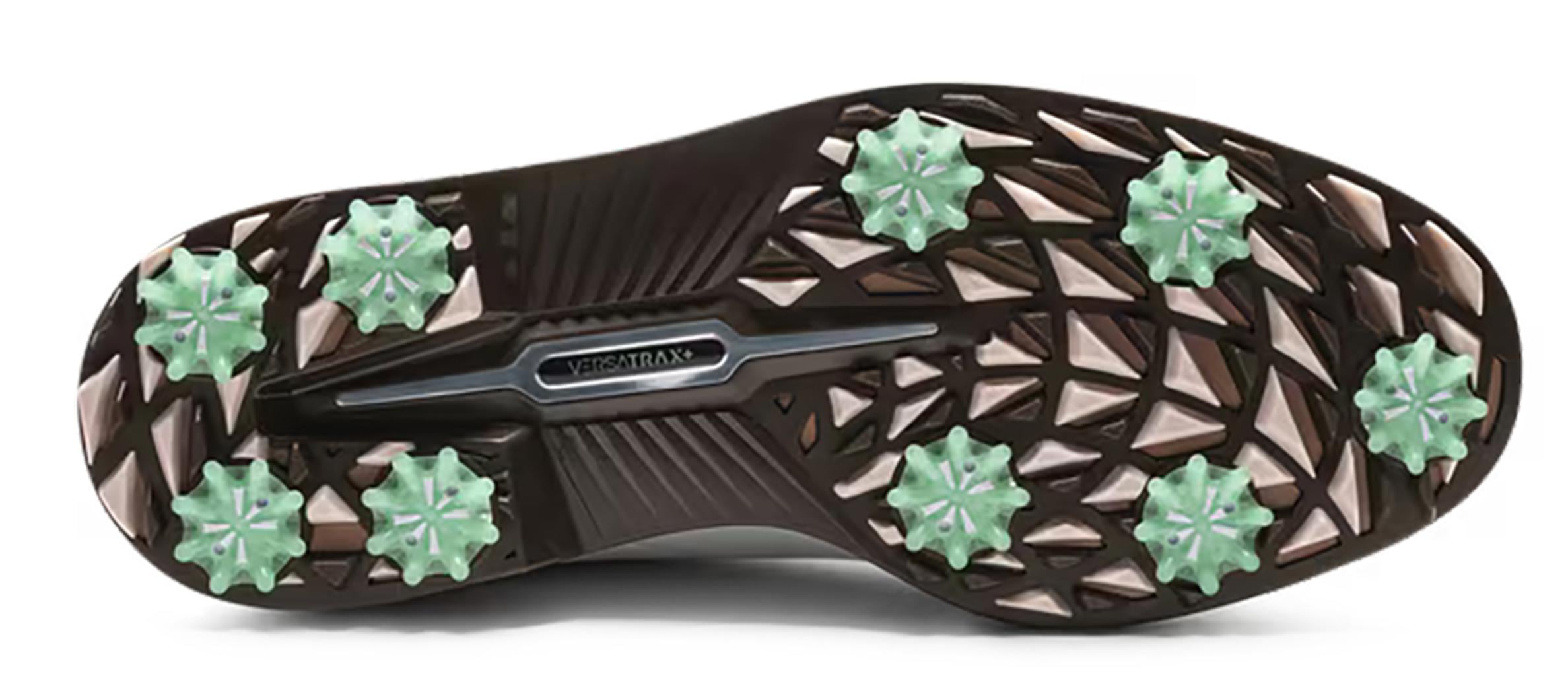 The innovative VersaTrax+ outsole features expertly engineered traction elements, making it ideal for exceptional performance on the course. Translucent rubber traction components offer a luxurious look and feel, while maximising grip with every step. The unique anti-channeling traction pattern ensures reliability from any lie or angle.