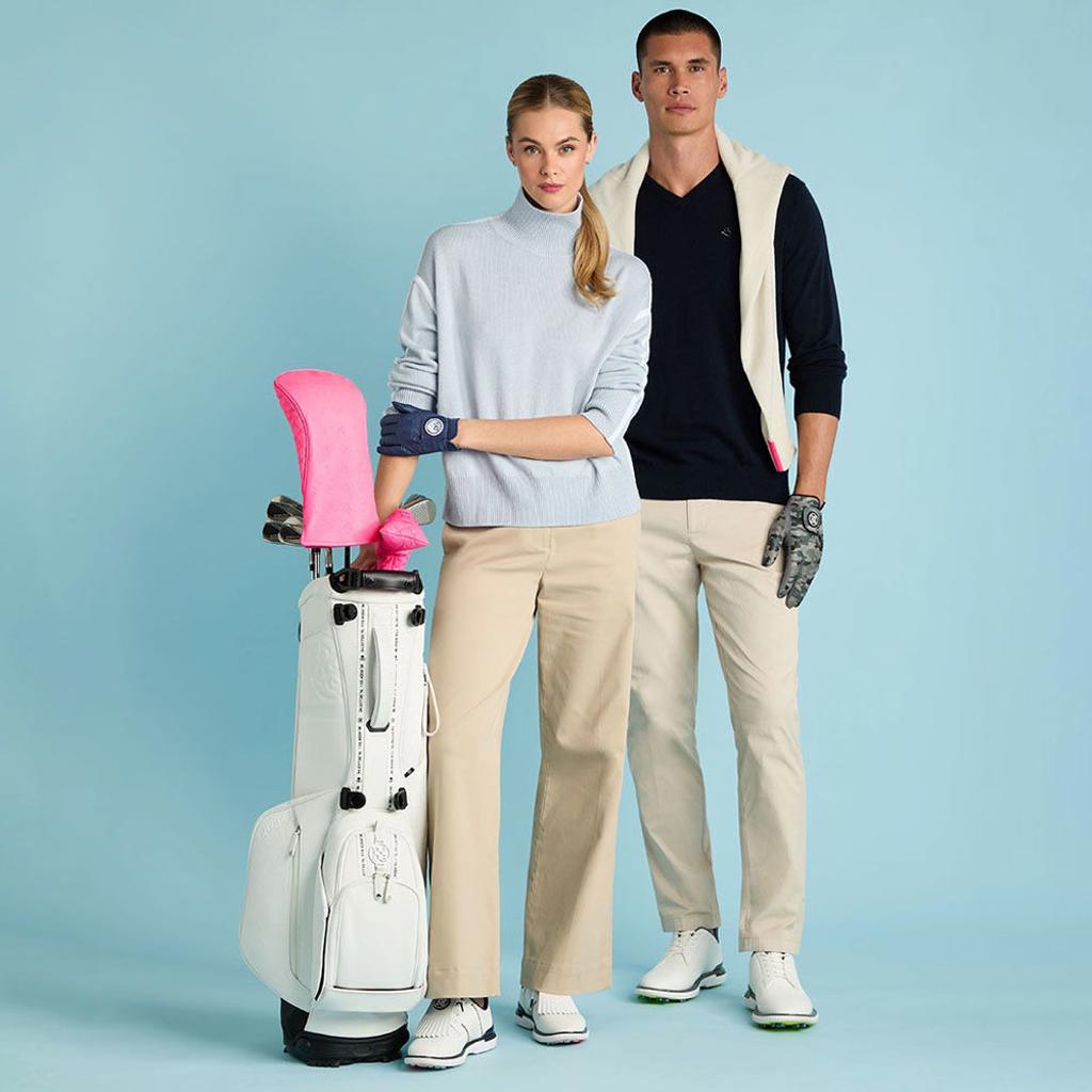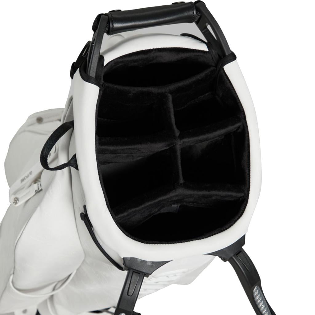 Introducing G/FORE's highly acclaimed carry bag, meticulously designed with a 4-way top that features a luxurious velour lining to provide optimal protection for your clubs. The innovative rotator stand system ensures remarkable stability, while the self-adjusting convertible strap allows for automatic equal distribution of weight, enhancing comfort during transport. Furthermore, the compression-moulded neoprene back panel guarantees a comfortable carry experience.