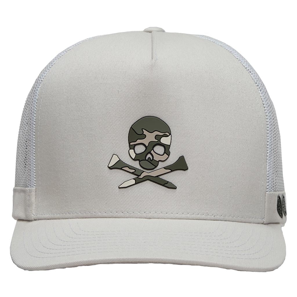 - Showcases a silicone camo skull & tees logo on the front