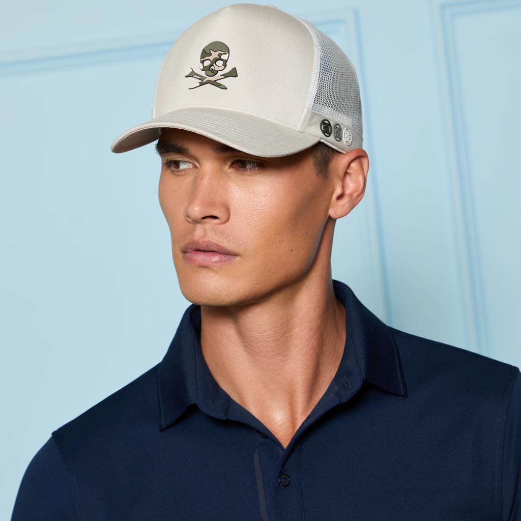 This tall trucker-style hat is expertly designed to provide optimal breathability and comfort, featuring a built-in athletic sweatband and mesh back panels. It adds a stylish touch to any outfit, whether you're on the course or off.