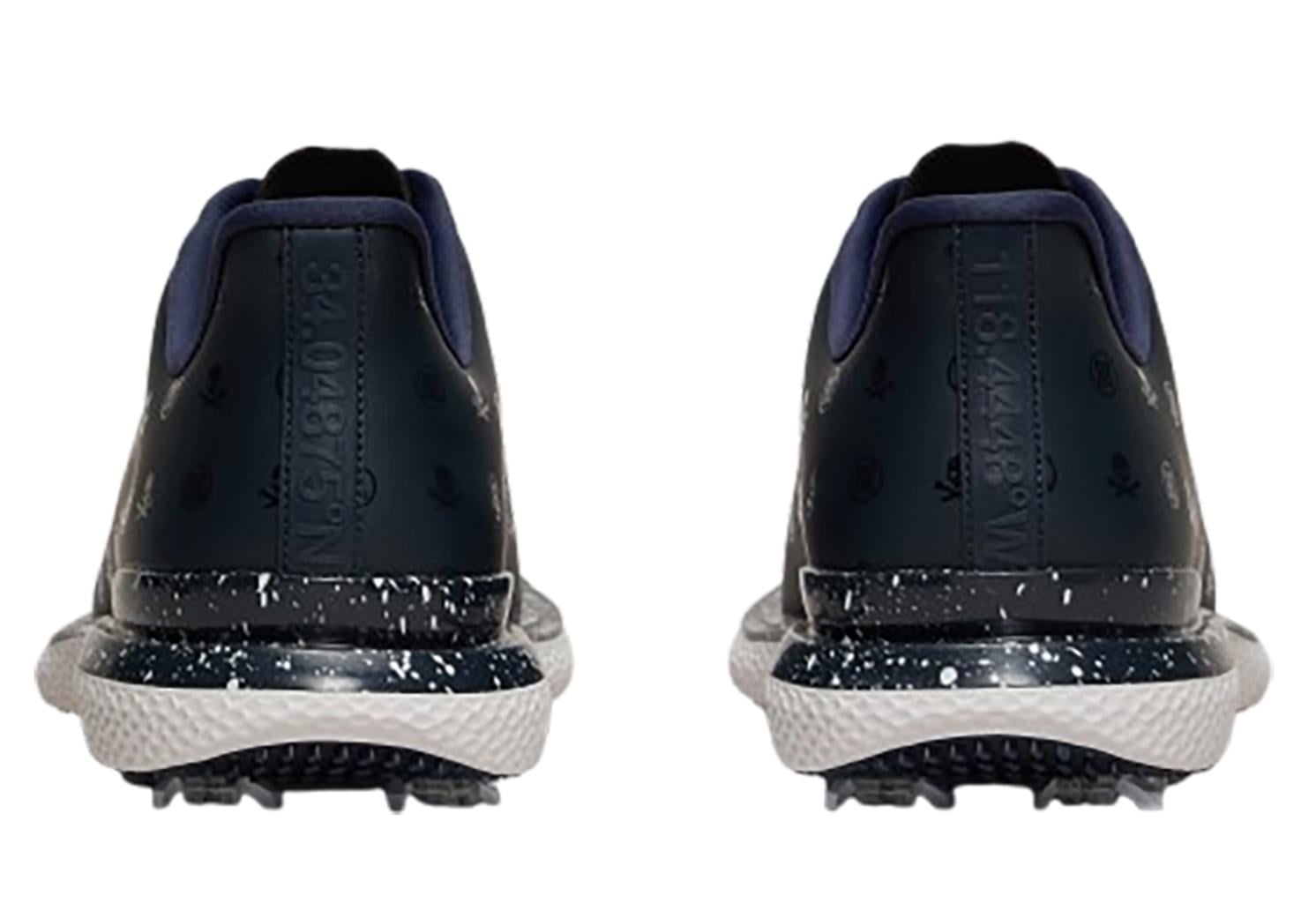 - Water-repellent T.P.U. with a striking contrast tuxedo stripe and stippling detail wrapping around the shoe, complemented by tonal printed skulls and tees throughout.