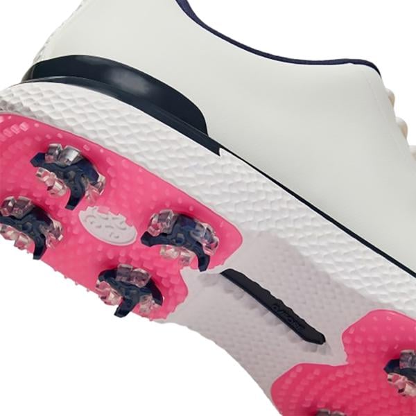 This remarkable shoe is designed with replaceable Softspikes, an auxetic lattice midsole, heel counter security, a cushioned interior, and a performance textile lining. Its ultra-lightweight and comfortable design guarantees complete locked-in stability with every swing. Additionally, the water-repellent T.P.U. upper ensures that weather conditions will not impede your performance.