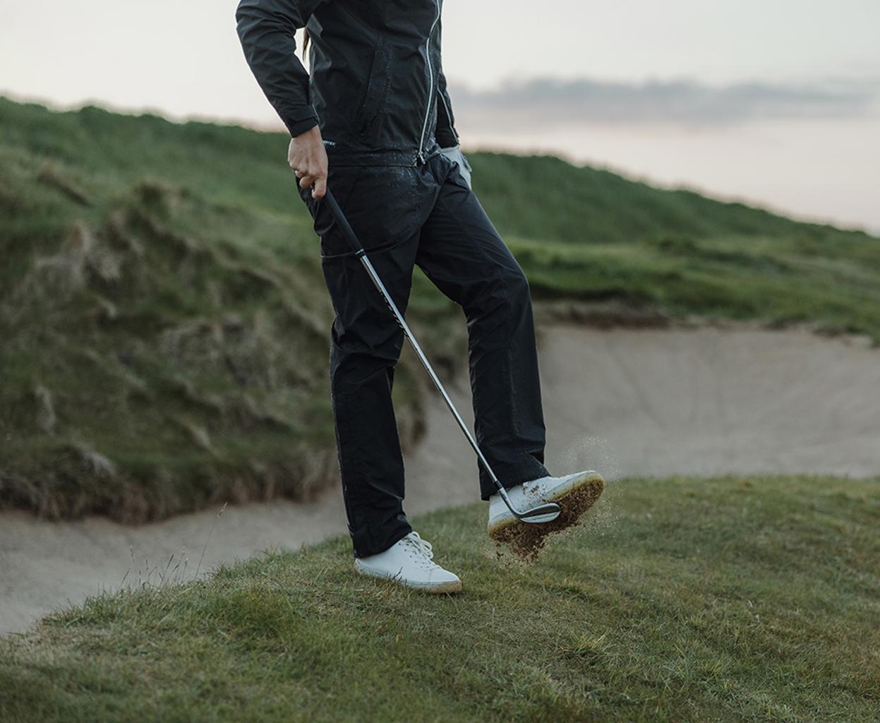 The April trousers are crafted with an elasticated waist and a drawstring feature to ensure a tailored fit. With fleece-lined front pockets and an additional back pocket, these trousers provide both comfort and practicality. The adjustable leg width, along with abrasion-resistant fabric at the hem, makes these trousers an ideal choice for comfort and durability whether on the golf course or for everyday wear.