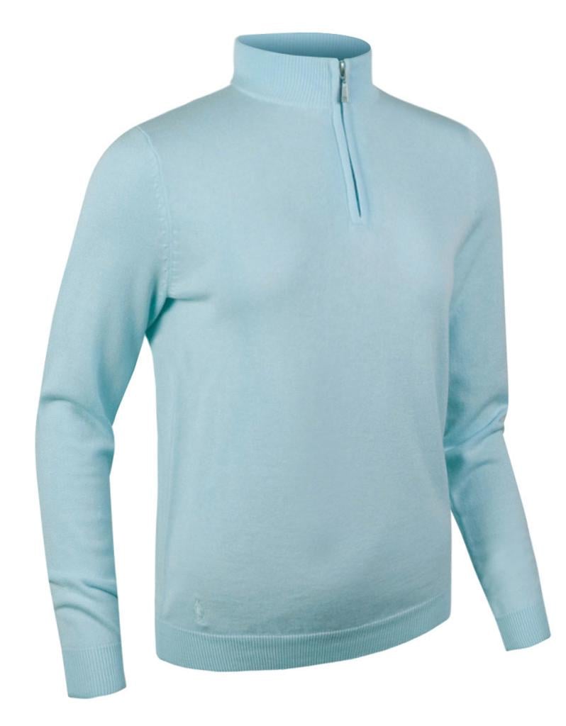 The Ladies Ava Zip Neck Sweater from Glenmuir provides the perfect stylish barrier against the cold while out on the golf course.