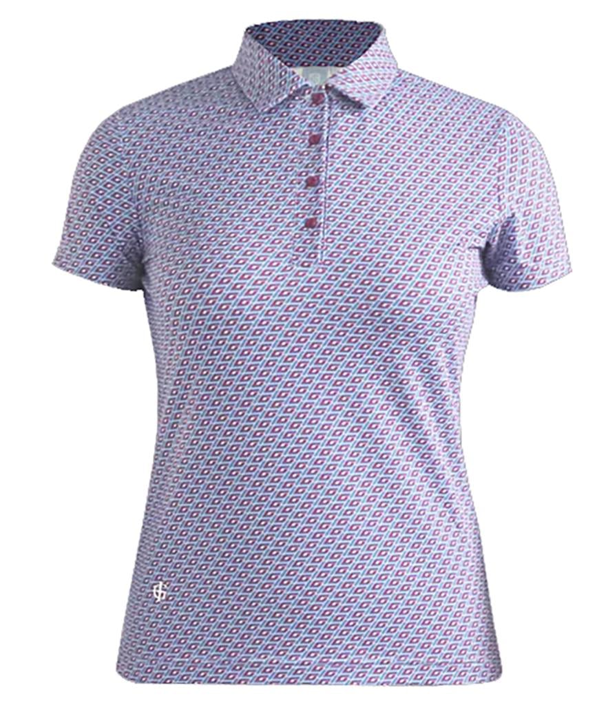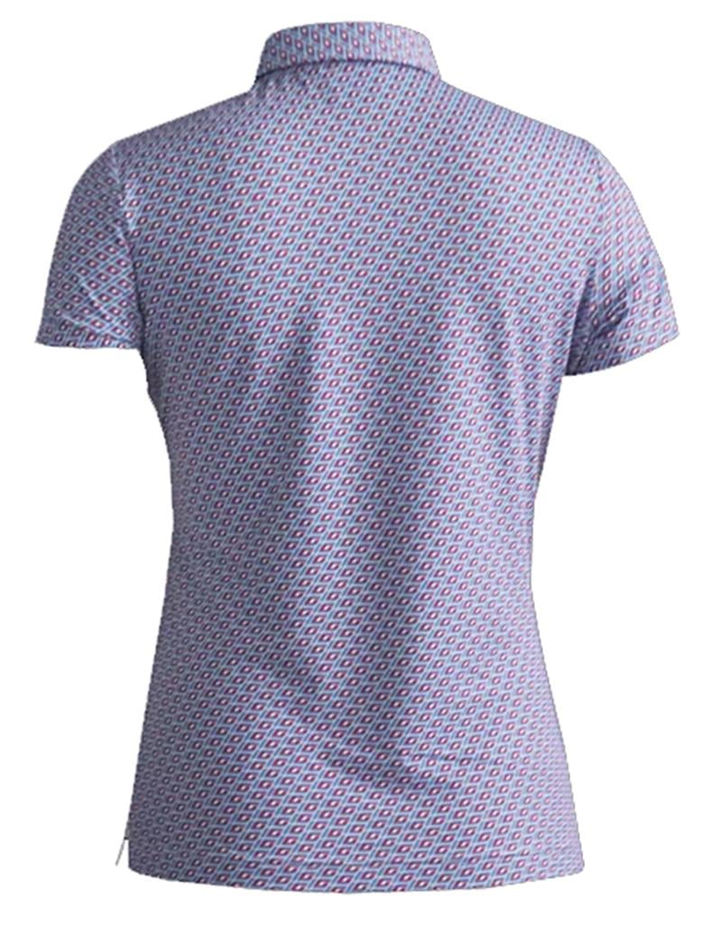 Capture attention on the golf course with this Ladies' 4-Button Polo showcasing a striking all-over geometric print.
