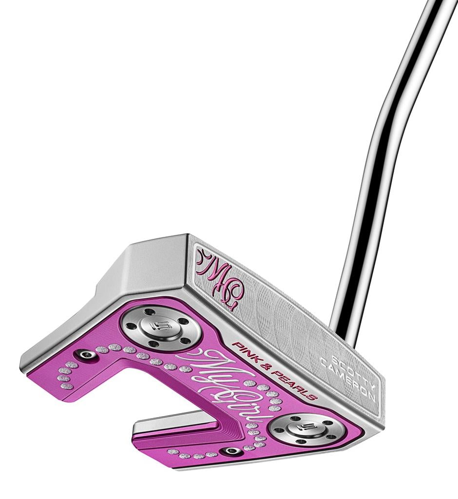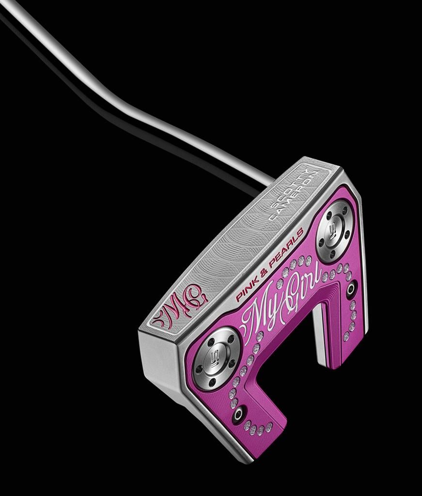 Introducing this year's limited edition Scotty Cameron My Girl “Pink & Pearls” putter, a stunning embodiment of style and craftsmanship, reminiscent of a Hollywood star making a glamorous entrance on the red carpet. This one-of-a-kind masterpiece features a prototype 34-inch Phantom 5 design that beautifully combines aesthetic allure with precision milling.