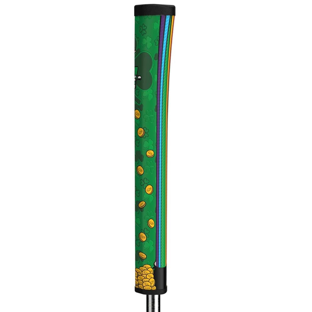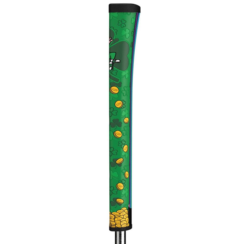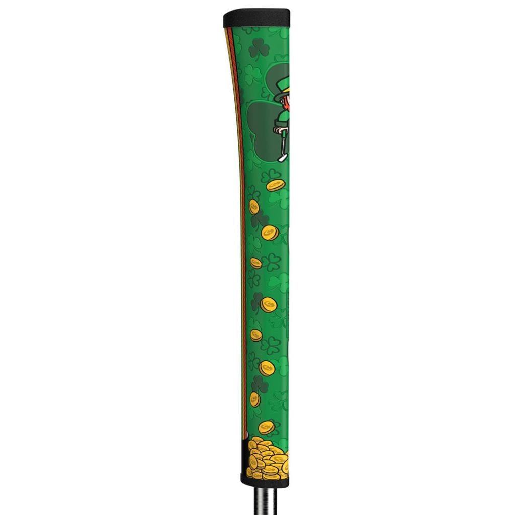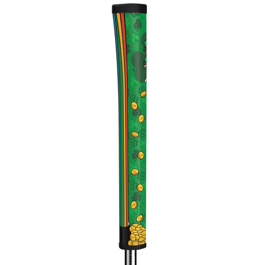 Showcasing the Lucky Leprechaun generously offering his treasure of gold coins and vibrant green beverages, this grip serves as your secret to unlocking birdies on the greens.