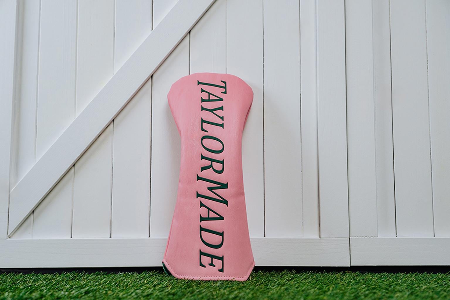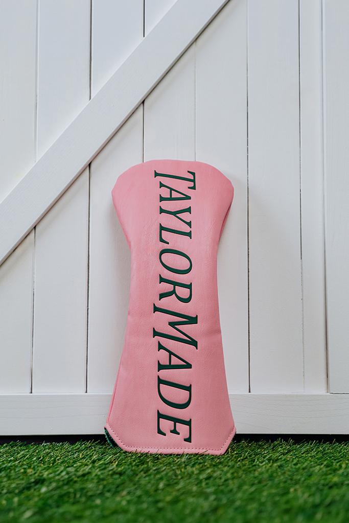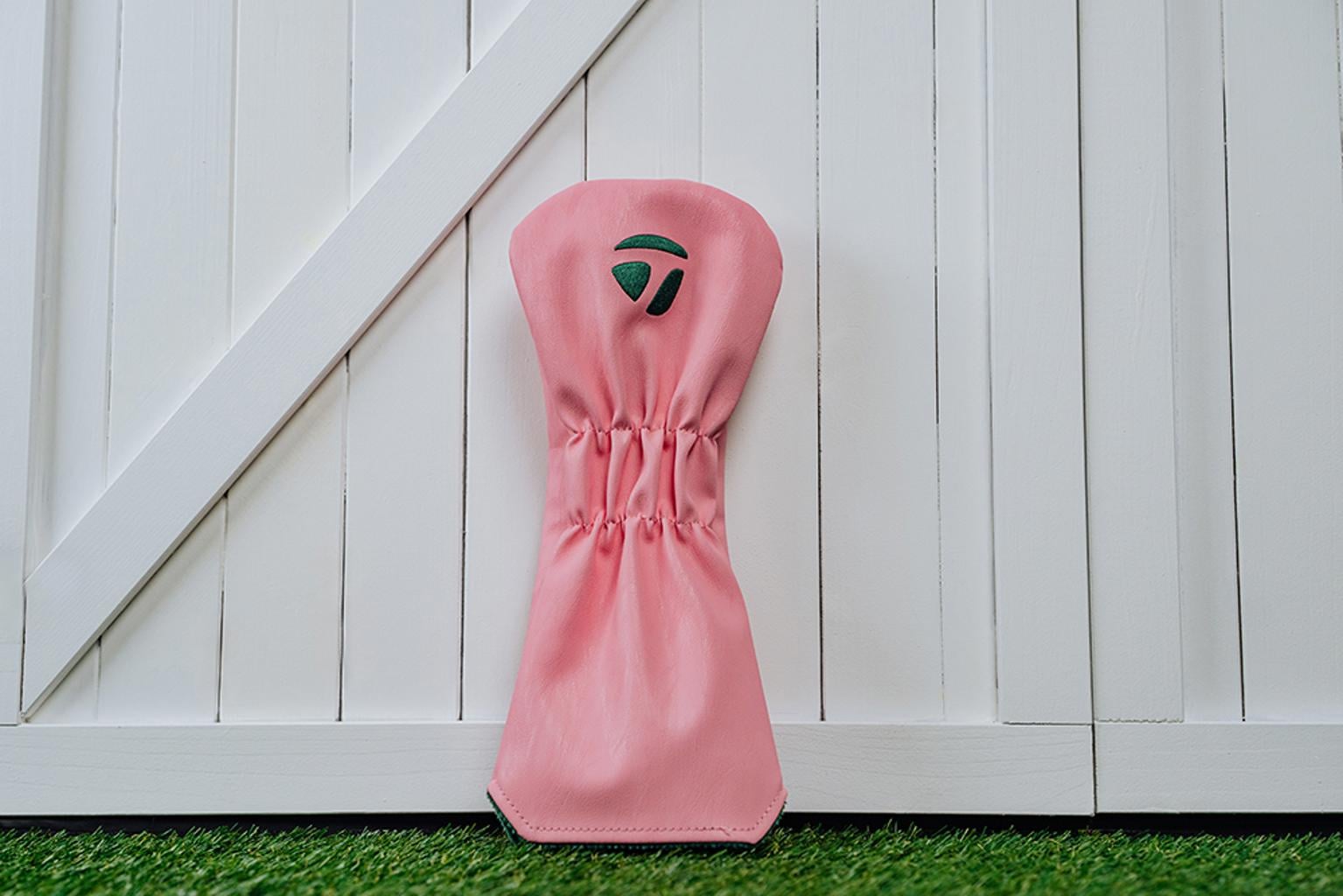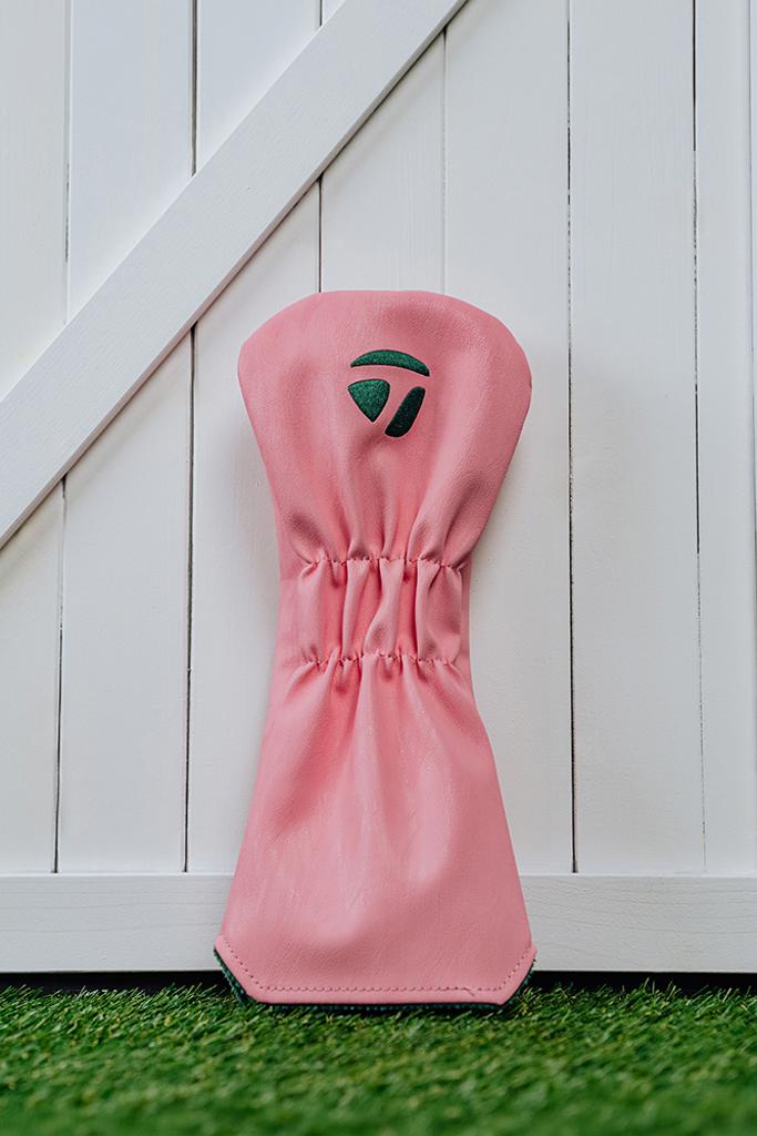 The woods headcovers boast a simple yet elegant design, showcasing a beautiful blend of pink, yellow, and white base colours, complemented by the green TaylorMade script that is prominently inscribed.