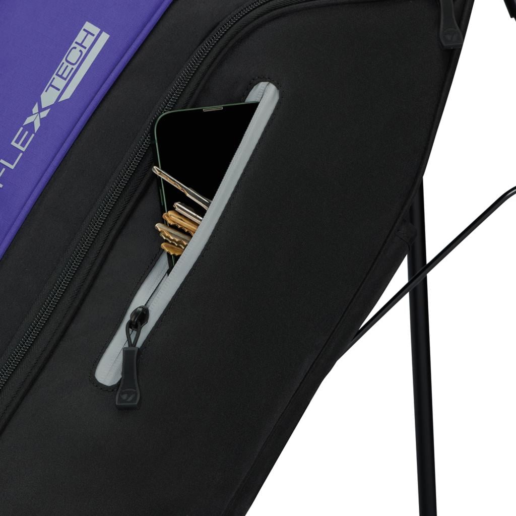 The TaylorMade FlexTech Stand Bag is meticulously crafted for golfers who seek effortless club access, intelligent storage solutions, and lightweight performance. With TaylorMade's innovative FlexTech Easy-In/Out base, this stand bag effectively reduces club crowding, allowing for seamless removal and replacement of clubs, whether you are carrying it or using it with a trolley.