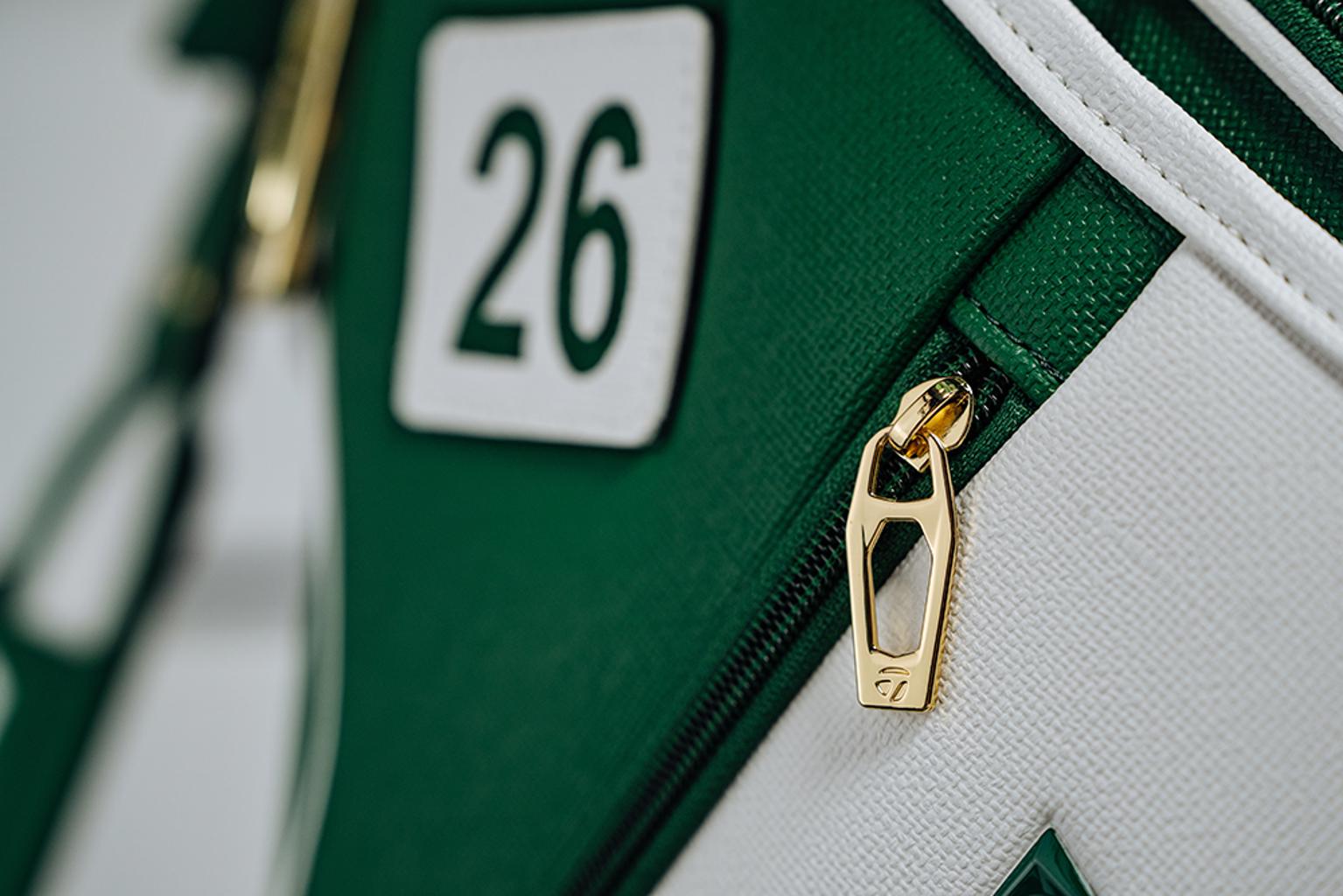 Upon closer inspection, you'll discover several thoughtful details that further honour this year’s event. A detachable patch with the number 26 is located near the top on the right side, a nod to the patches worn by caddies that display their players’ numbers. Additionally, the front valuables pocket features a rotary phone design, a clever reminder that phones are not permitted beyond the gates, encouraging you to set yours aside while enjoying your time on the course.