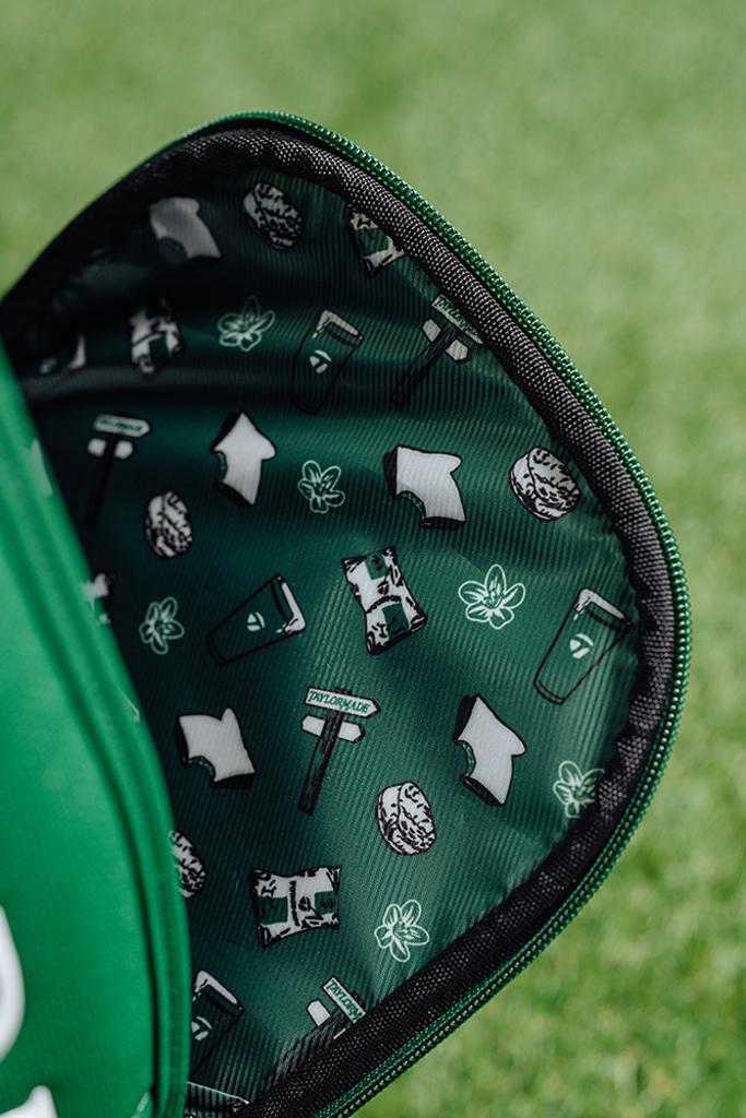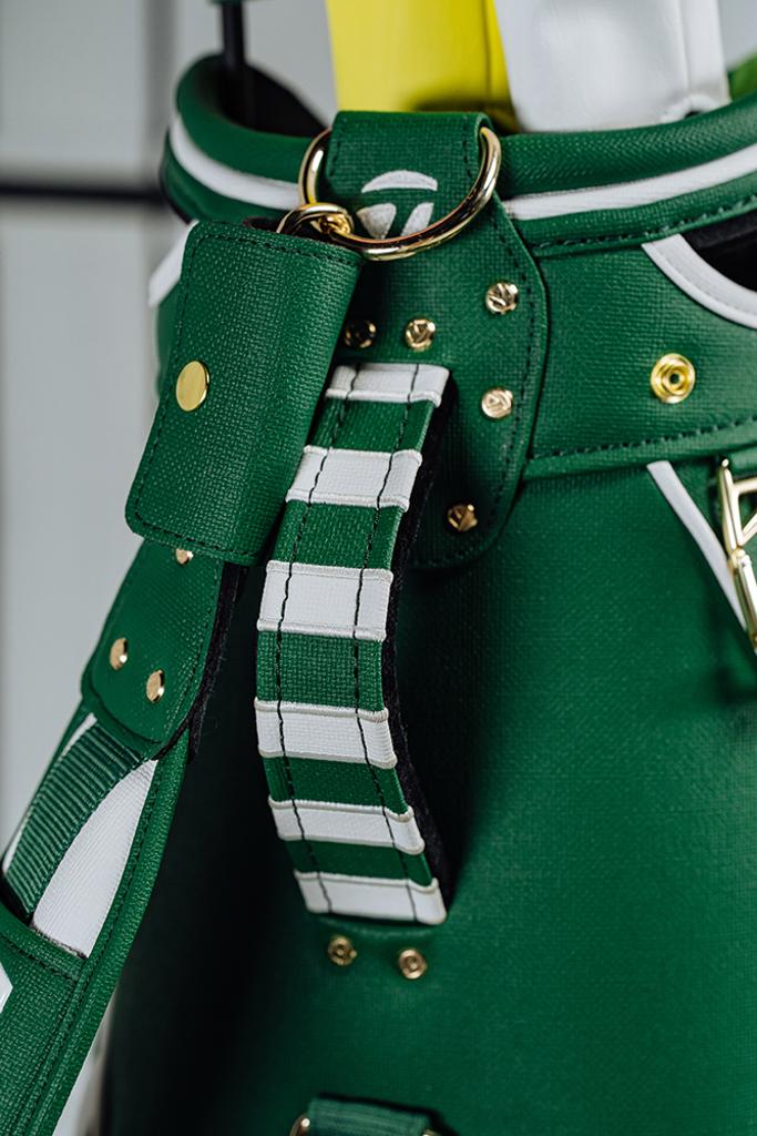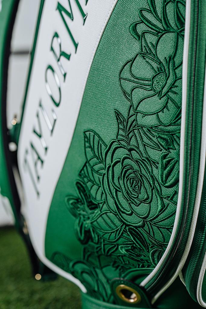 Prominently displayed in Green TaylorMade script against a white background, the design instantly evokes the essence of the tournament. Each side panel showcases azalea stitching, paying tribute to the official flower of both the tournament and its host venue. The white trim and stitching provide a striking contrast, mirroring the distinctive features of these legendary grounds.