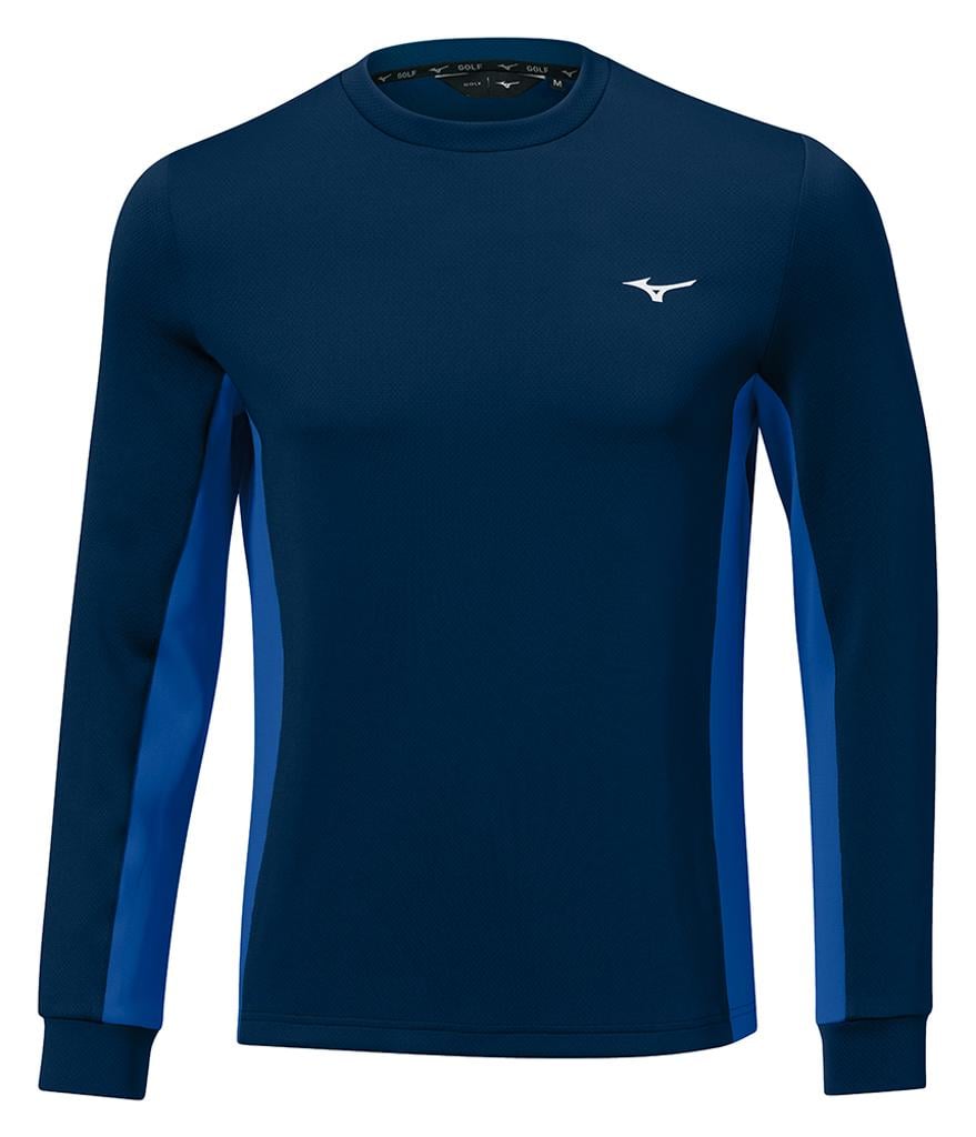 Finished with a crew neck and a large Mizuno tour logo on the chest for added style. Mizuno golf sweaters offer the perfect mix of sporty design with performance fabrics.
