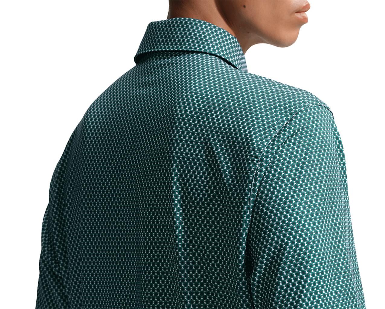 This polo features a sophisticated all-over floral micro print, offering just the right touch of character while ensuring a polished appearance. Crafted from lightweight, moisture-wicking fabric, it keeps you dry and comfortable throughout your day. The standard fit allows for effortless movement, making it suitable for both the golf course and everyday outings. This polo combines contemporary style with a technical advantage.