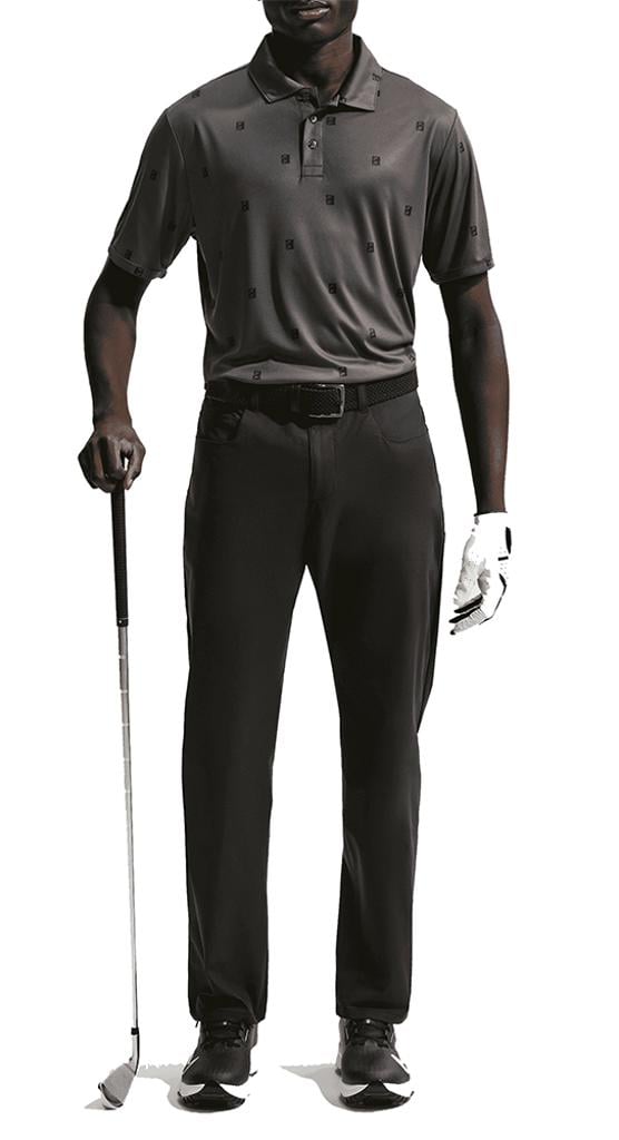 The Par 5 Polo print honours the 40th anniversary of the Seve Ballesteros “double stack” Futura logo from the 1986 Masters.