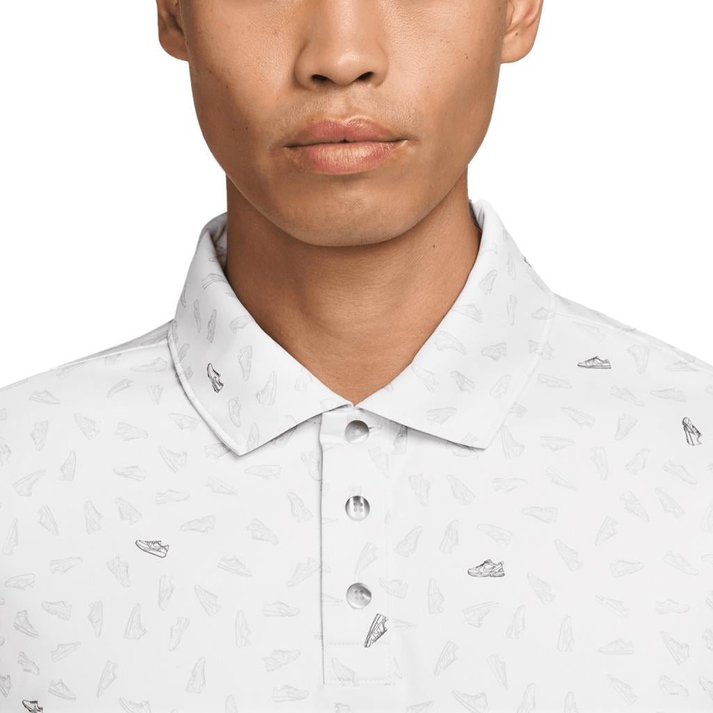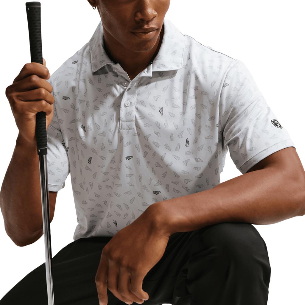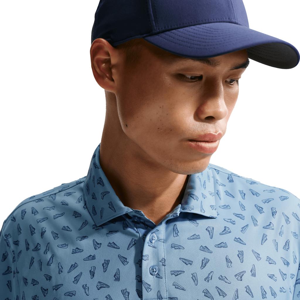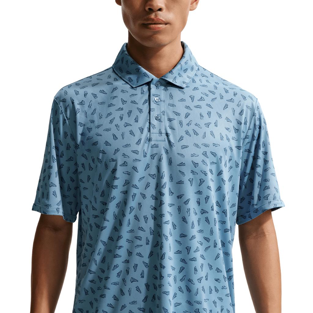 The Par 5 Polo print stands out by seamlessly integrating Nike footwear into stylish apparel.
