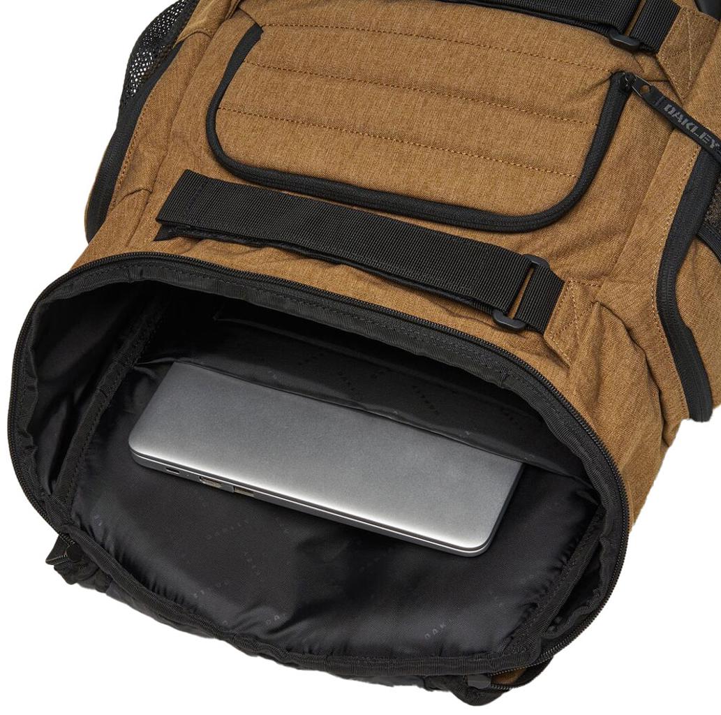 This robust backpack features a tough exterior with a water-repellent coating, ensuring your belongings remain dry even in unexpected weather conditions. The padded compartments for laptops and tablets provide security and protection for your electronics, while the internal organisational panel helps keep all your gear tidy and accessible. The external eyewear pocket is designed for the quick storage of your sunglasses, allowing for easy access when needed.