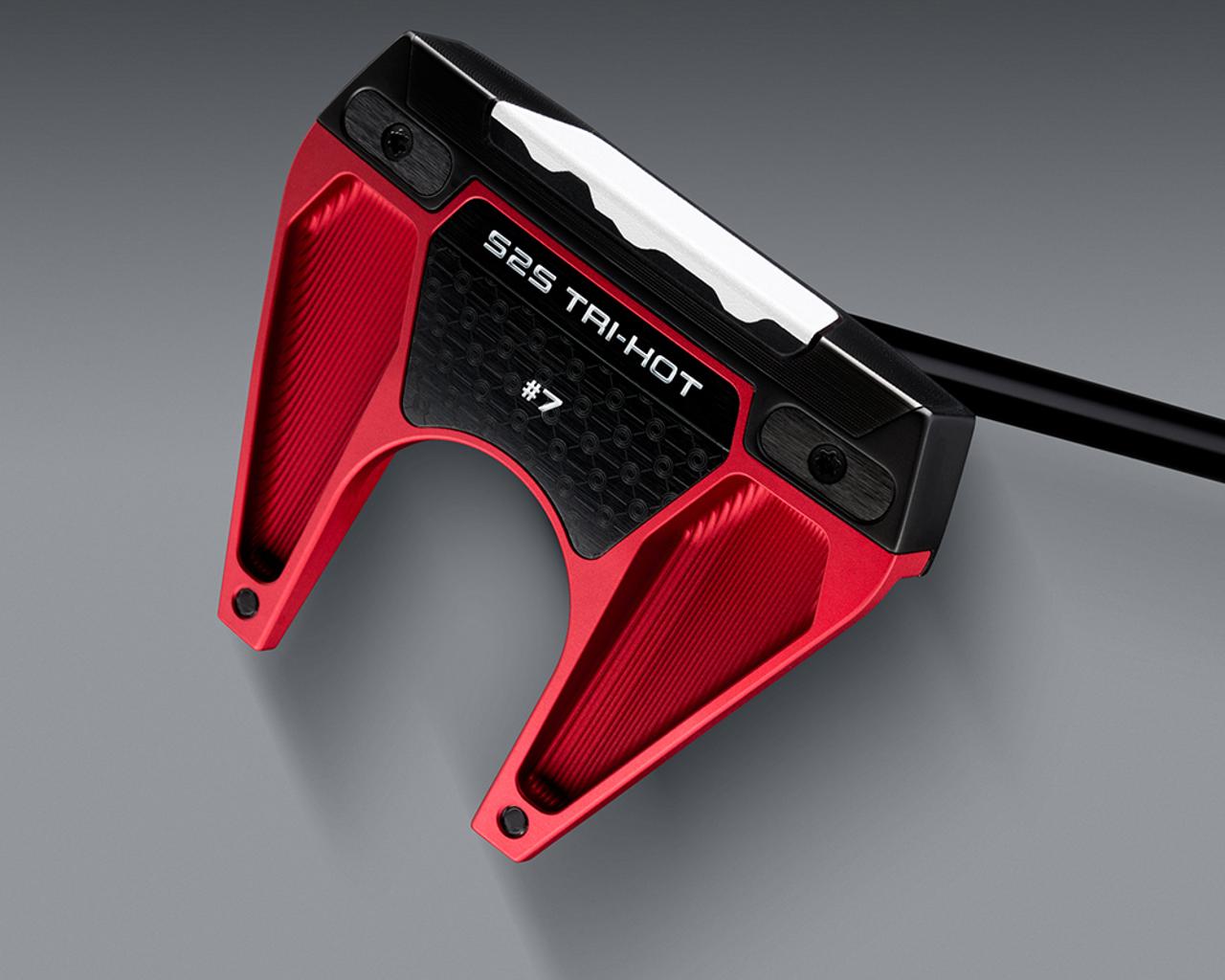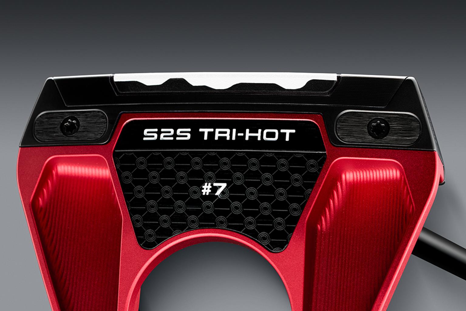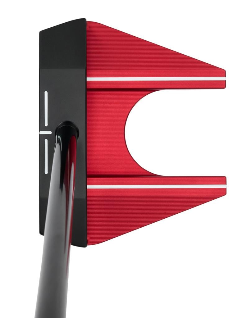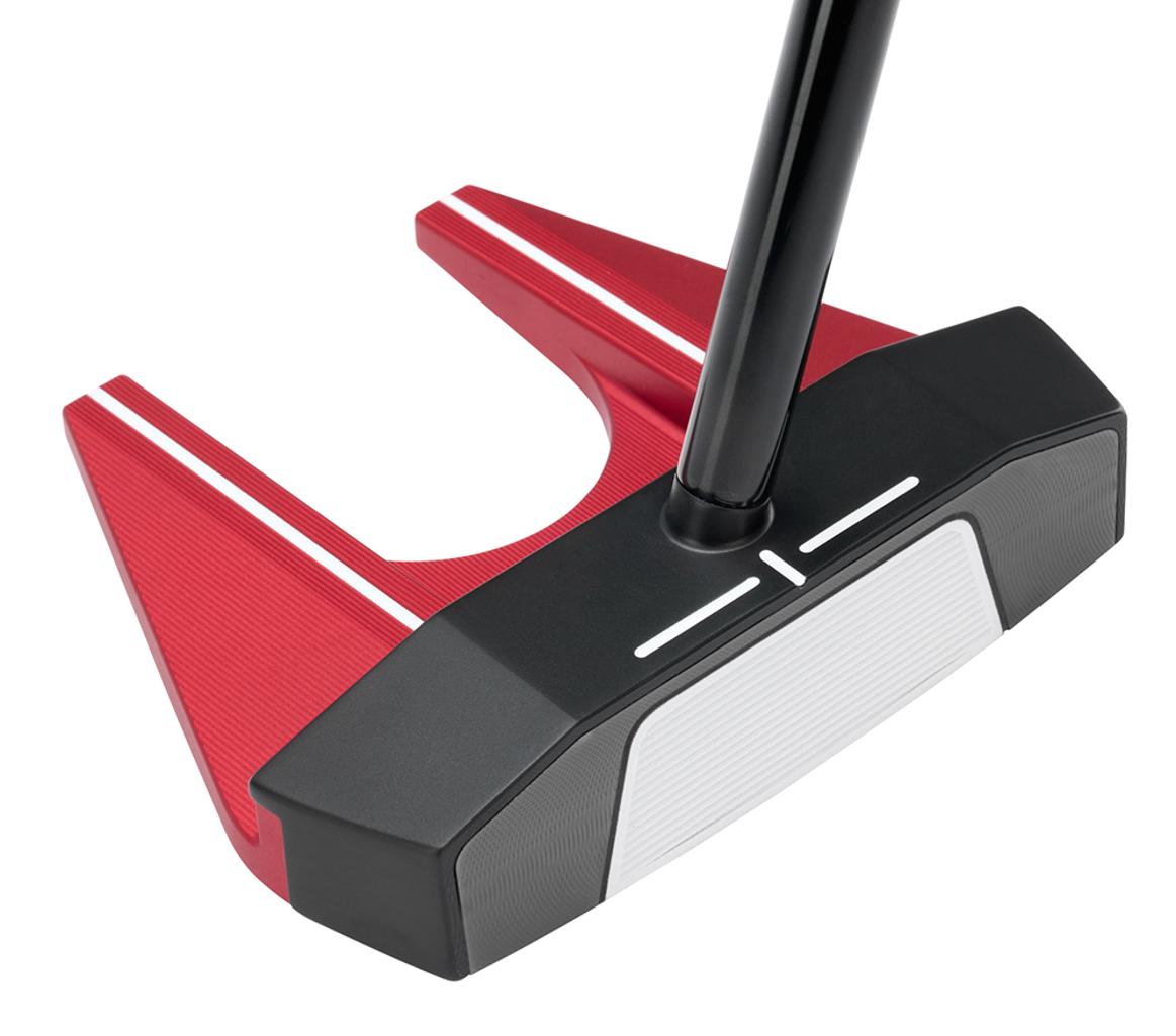 Odyssey’s innovative S2S TRI-HOT putters signal a groundbreaking advancement in the “Zero Torque” category. Through advanced multi-material construction, we have successfully repositioned the centre of gravity (CG) in these putters, moving it far enough forward to allow the shaft to enter the head at the topline. This innovative design effectively removes the necessity for shaft lean, thereby addressing a significant obstacle for users of this style of putter.