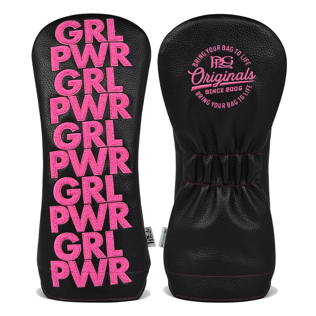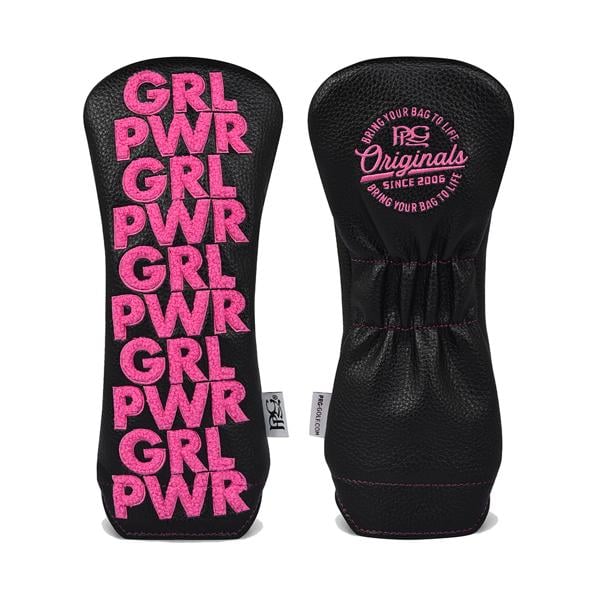 Crafted with a striking hot pink chenille “GRL PWR” patch set against a sleek black leatherette, this driver cover makes a statement for players who not only show up strong but swing even stronger. This design focuses on embracing your game with confidence and individuality.