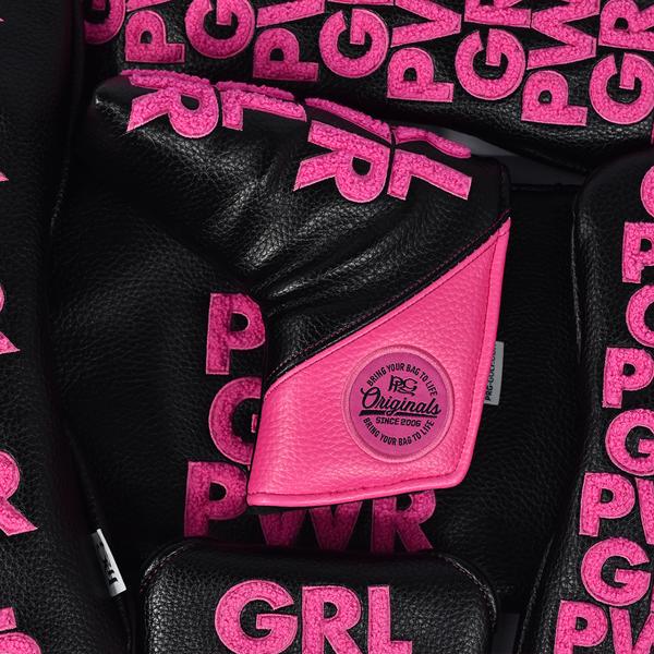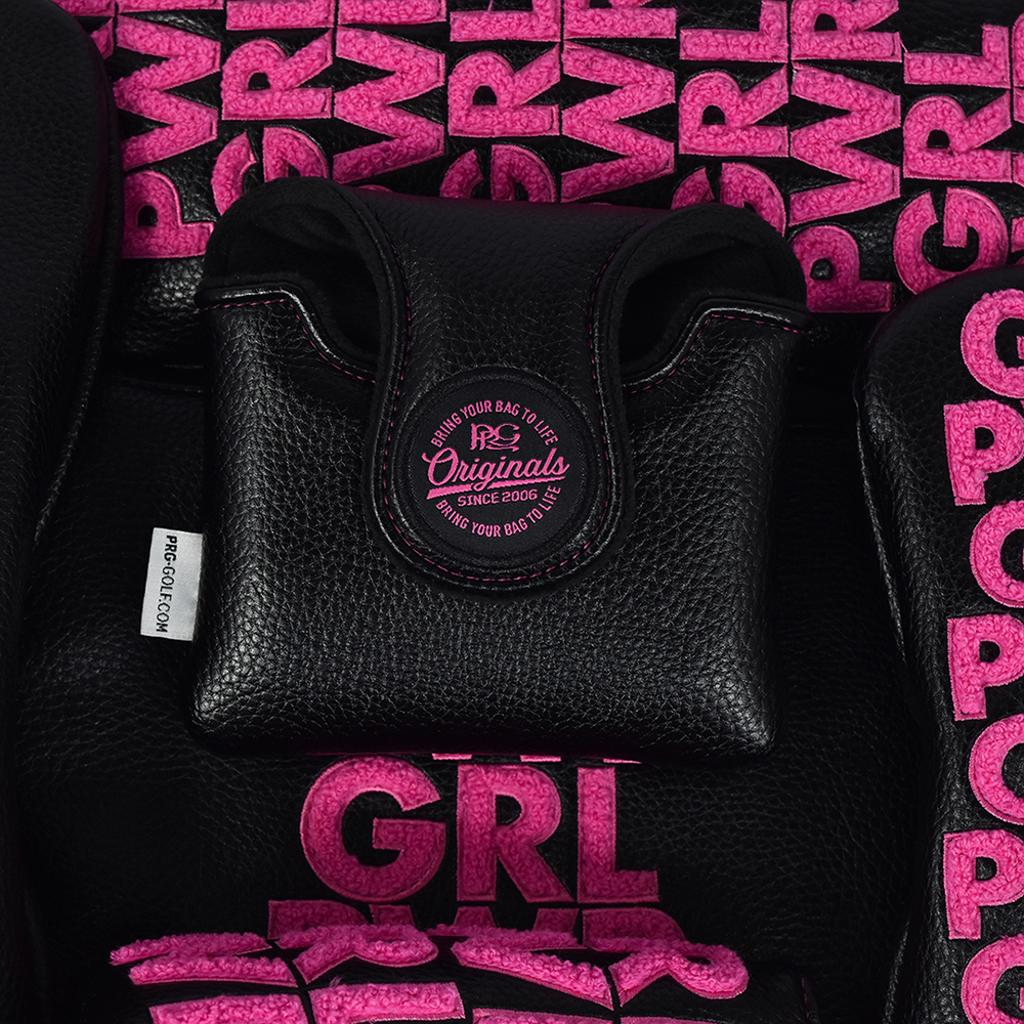 GRL Power infuses fierce energy into your game. Featuring a striking hot pink chenille "GRL PWR" patch on sleek black leatherette, this piece is designed for players who embody strength and confidence on the course. It's all about asserting your game and showcasing your individuality.