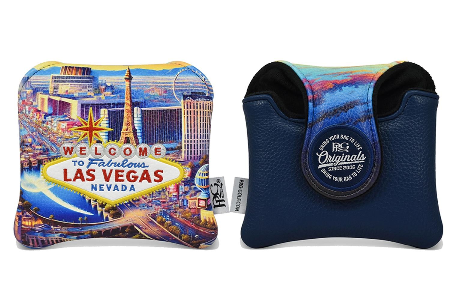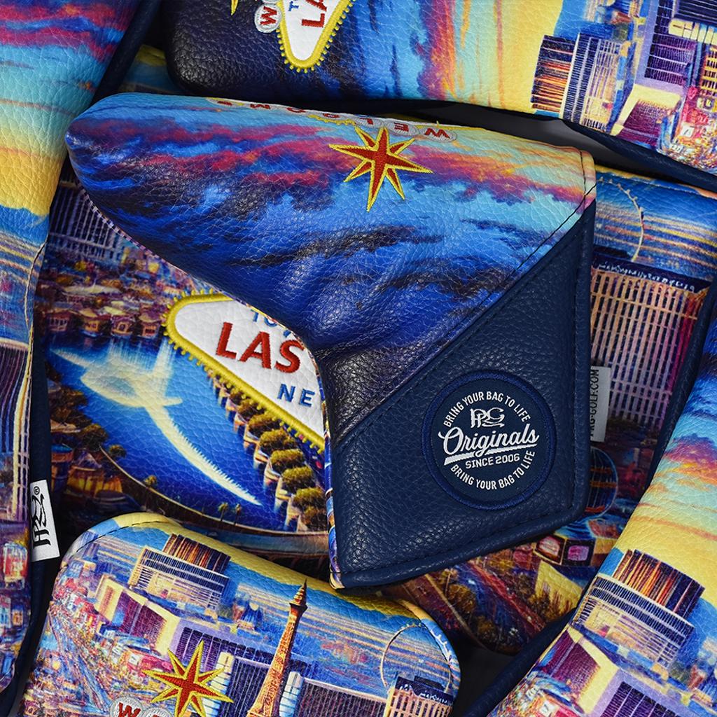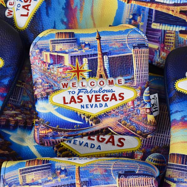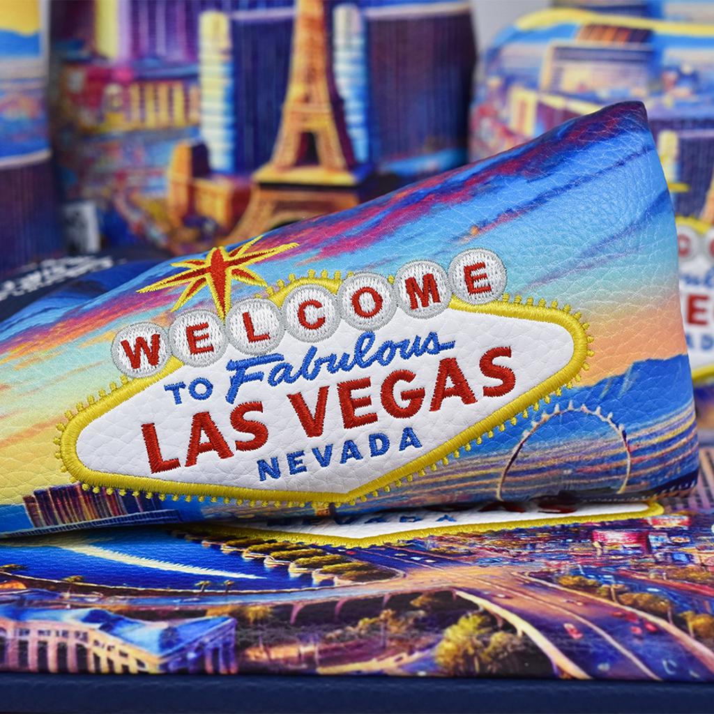 Experience the essence of Sin City with our spectacular duo, which perfectly blends the thrill of late-night jackpots with the tranquillity of sunrise tee times. This headcover and accessories collection showcases a vibrant printed sunset skyline, along with the city’s famed Welcome sign, tailored specifically for the avid Vegas golfer!