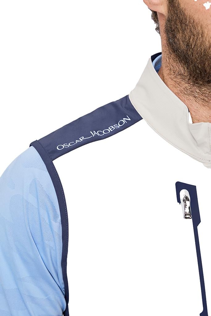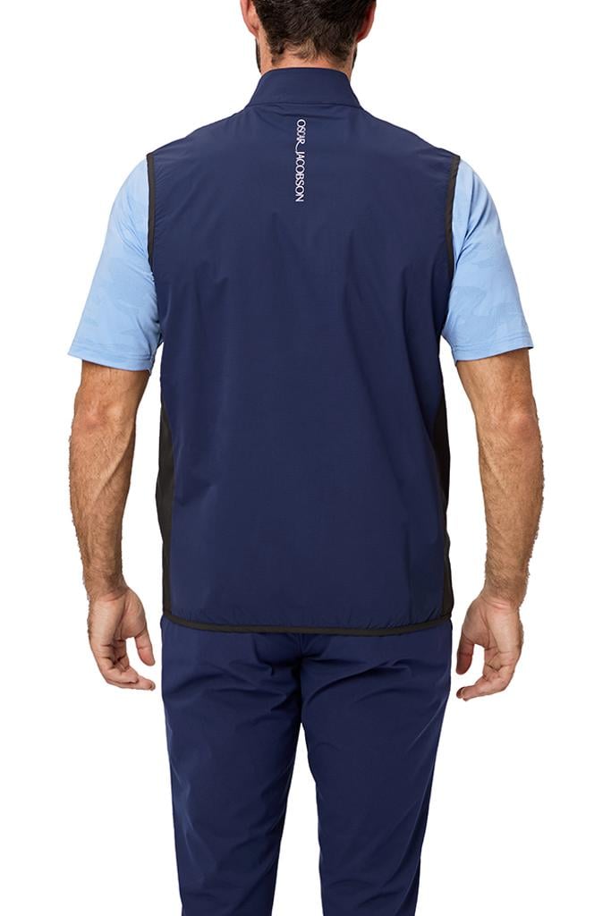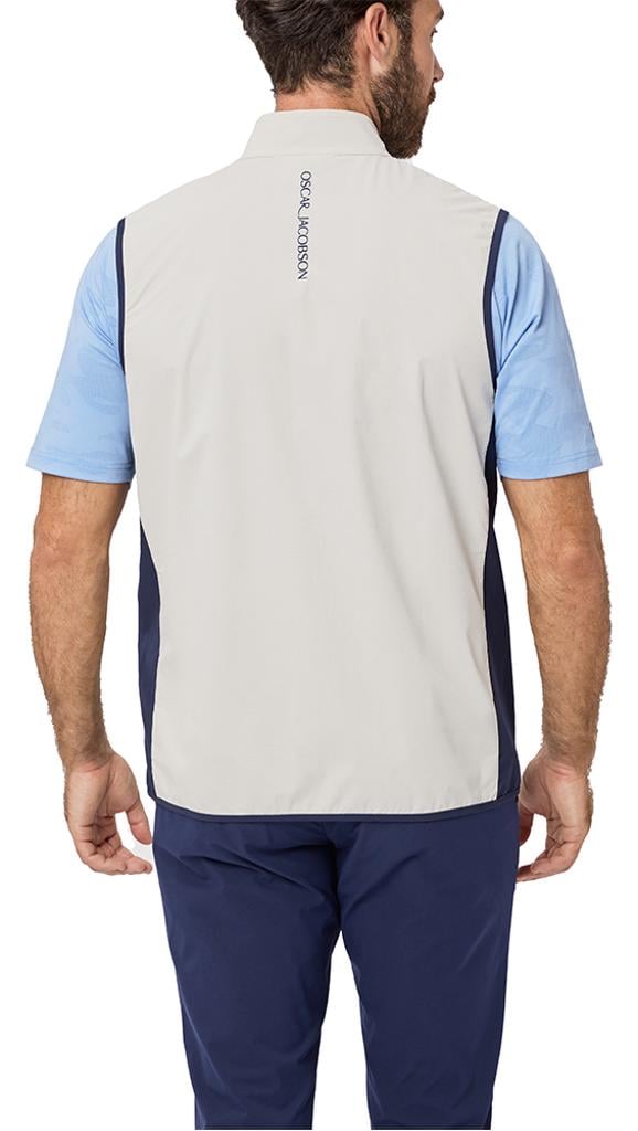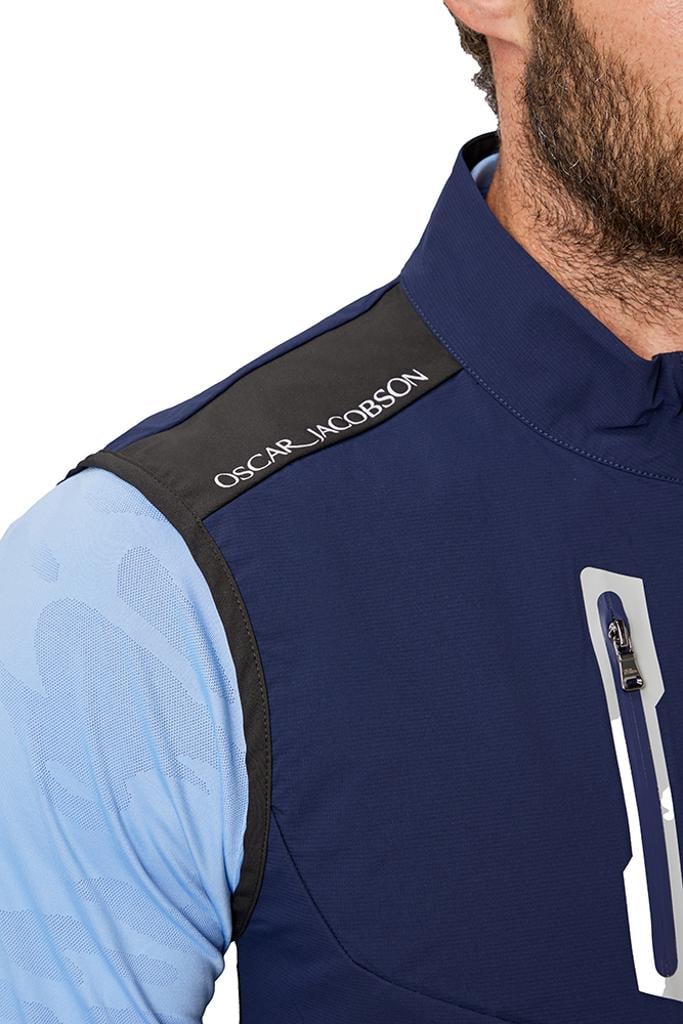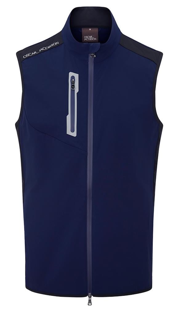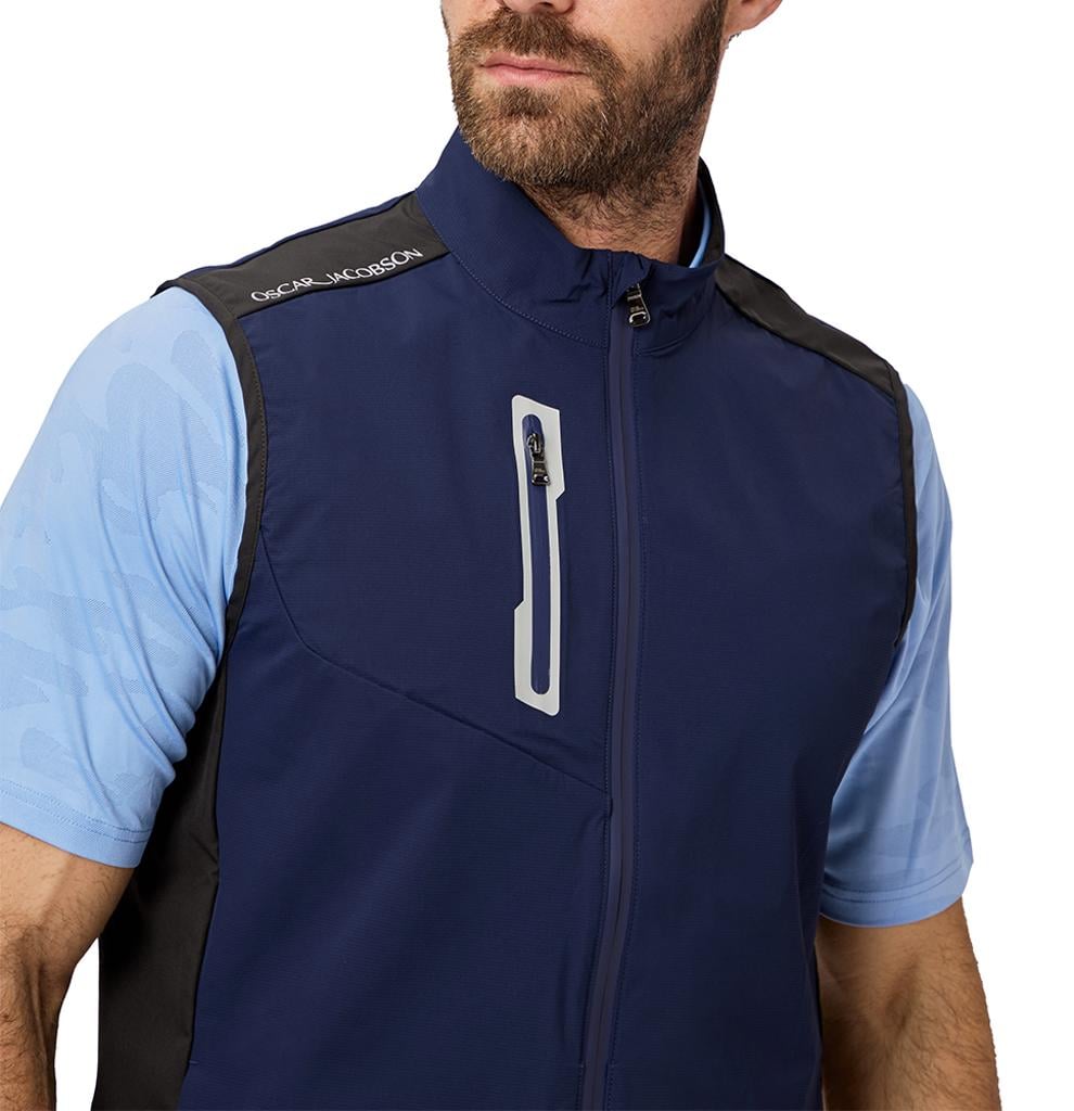 Designed to withstand wind and light rain, it offers practical protection without compromising breathability and flexibility. The front chest zip features contrast bonded tape, adding a modern and sporty touch to this gilet, making it a fashionable yet functional layering option for cooler days.