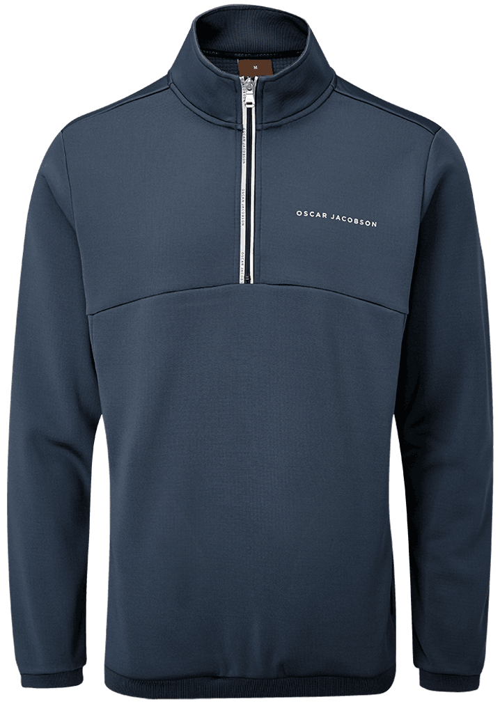 The reflective contrast quarter zipper, new cut out logo application to the reverse of the garment and stitched lines are details that premium look.