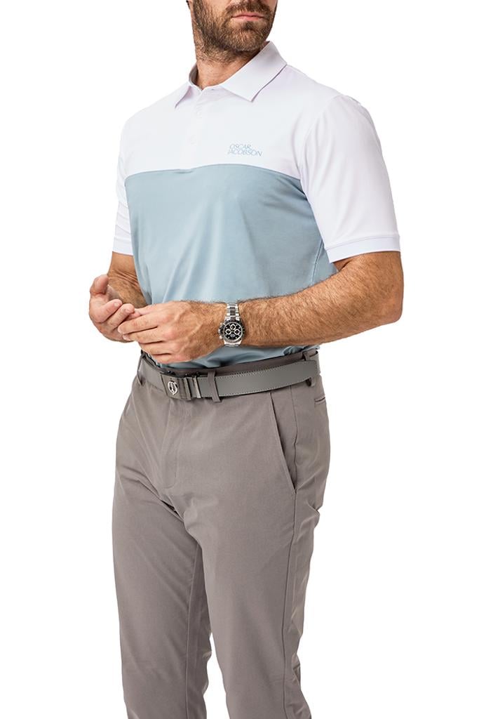 A striking technical performance polo shirt that seamlessly blends modern aesthetics with exceptional functionality, thanks to its four-way stretch fabric designed for ultimate comfort and mobility.