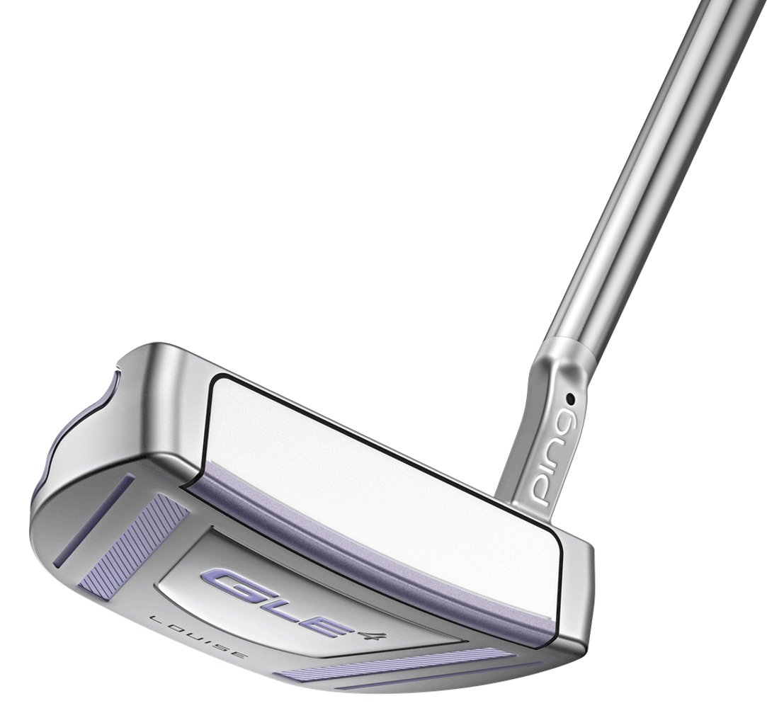 The G Le4 Louise putter showcases a sophisticated mid-mallet design, paying tribute to PING co-founder Louise Solheim. This exceptional putter borrows its weight and shaping characteristics from the renowned DS72, yet it features a distinctive flared hosel and a parallel-tip shaft. This design is tailor-made to accommodate golfers with a strong stroke type.
