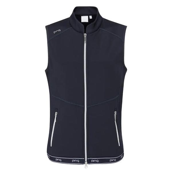 Introducing the Immy Vest in navy, a meticulously designed ladies' golf vest that blends lightweight warmth with freedom of movement.